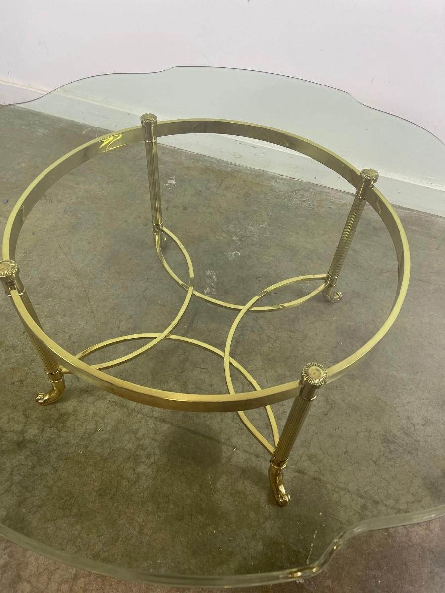 Vintage Brass Cocktail Table With Scalloped Glass Top