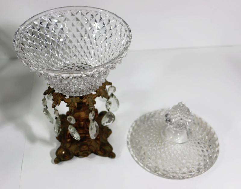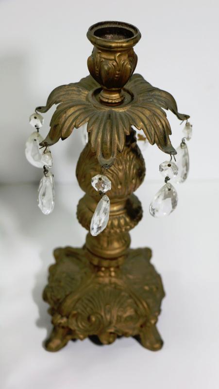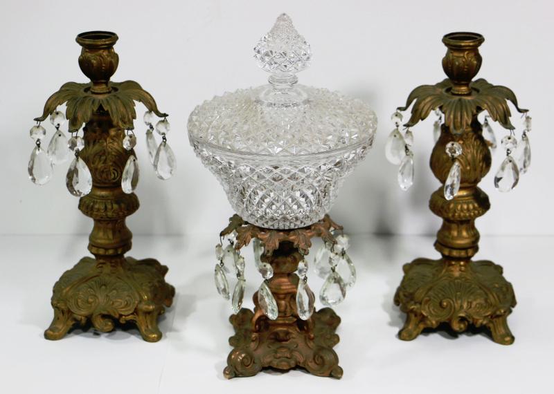 Vintage Brass & Crystal Candle Holders with Center Piece