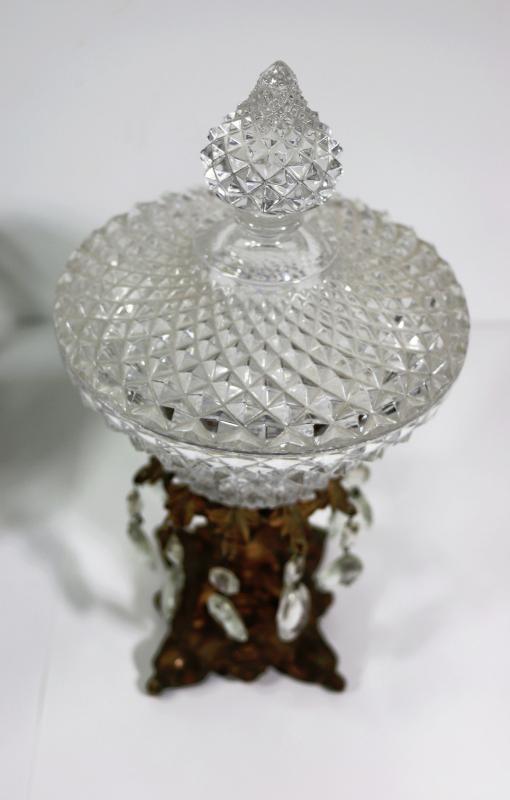 Vintage Brass & Crystal Candle Holders with Center Piece.