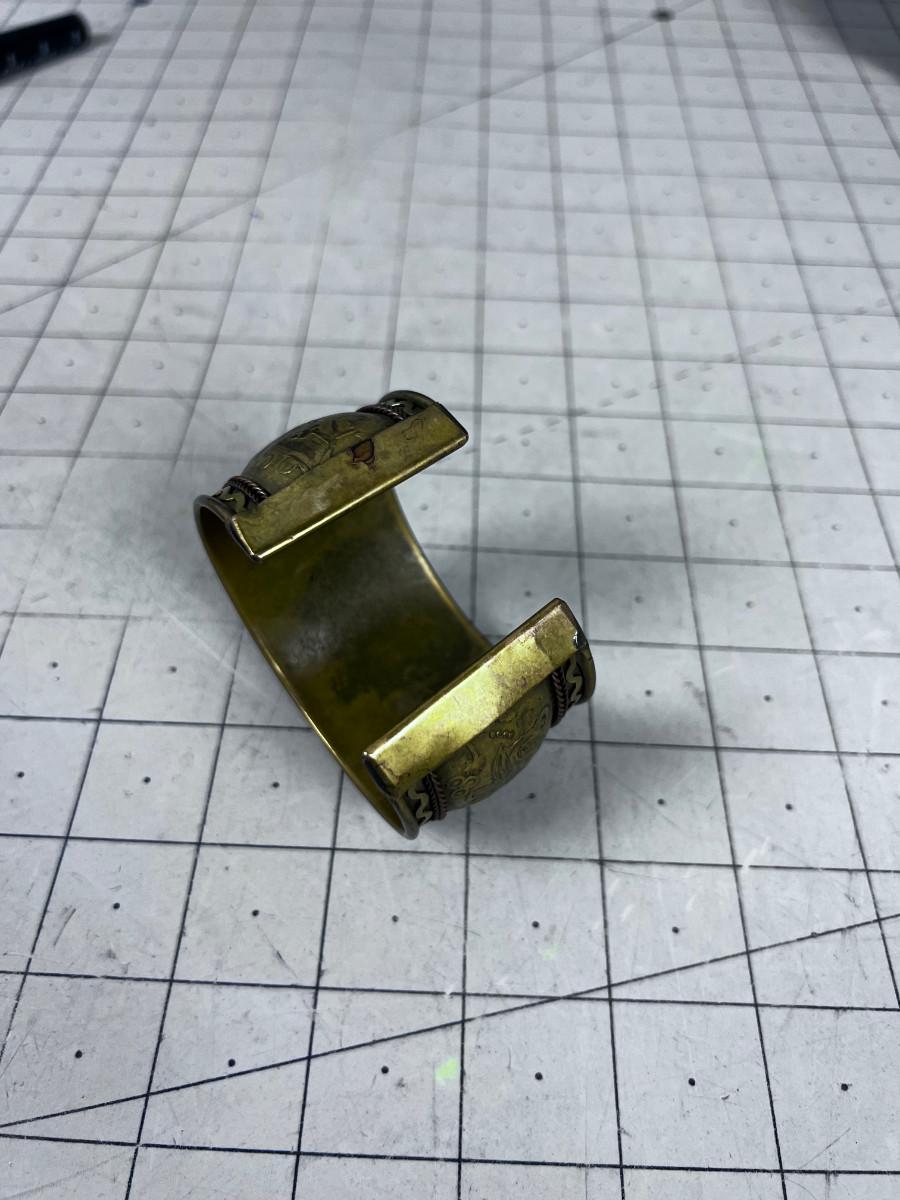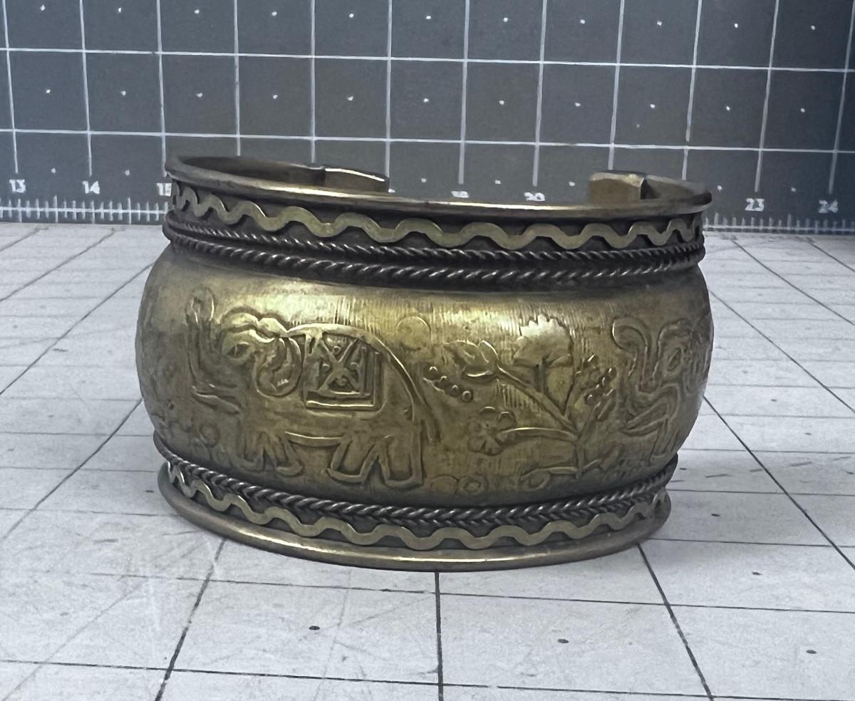 Vintage Brass Cuff Bracelet with Elephants on it.