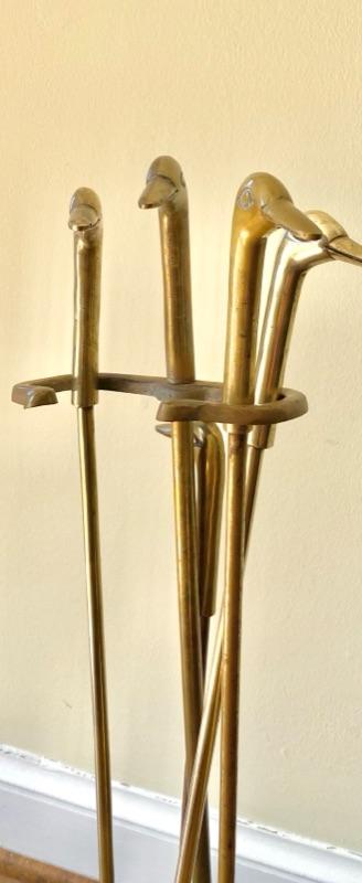 Hollywood Regency Brass Duck Head Fireplace Tools