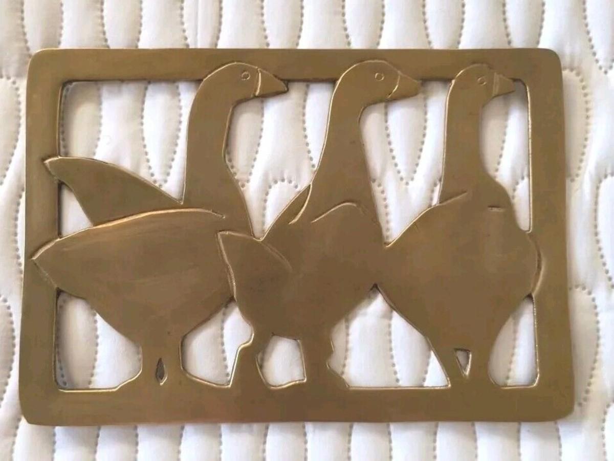 Vintage brass duck trivet omnibus hot farm core kitchen core