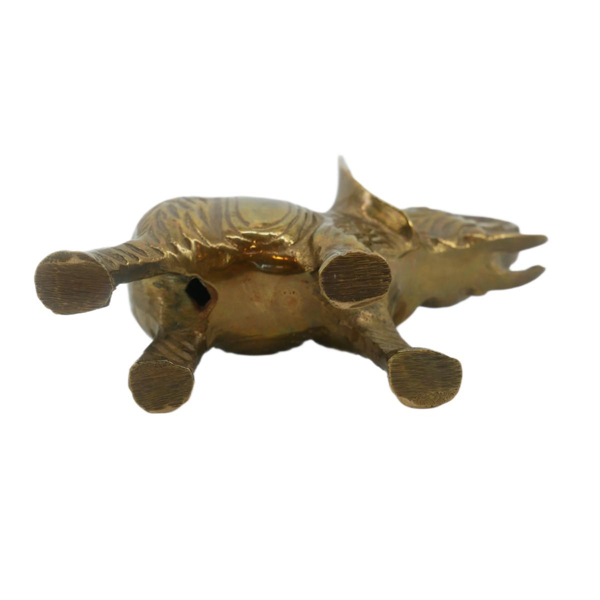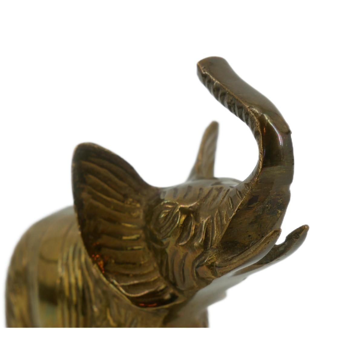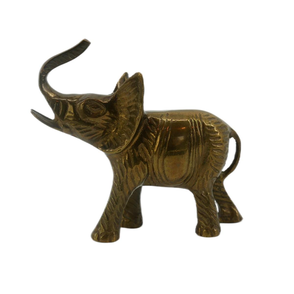Hand-carved, vintage brass elephant figurine. Measures 4.5" x 1.5" x 4", weighs 13.5 oz, no issues found.