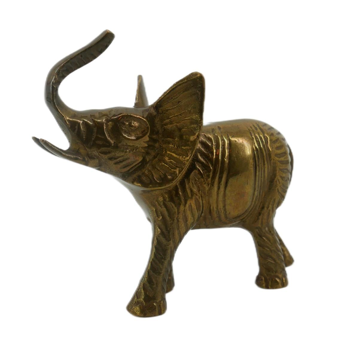 Hand-carved, vintage brass elephant figurine. Measures 4.5" x 1.5" x 4", weighs 13.5 oz, no issues found.