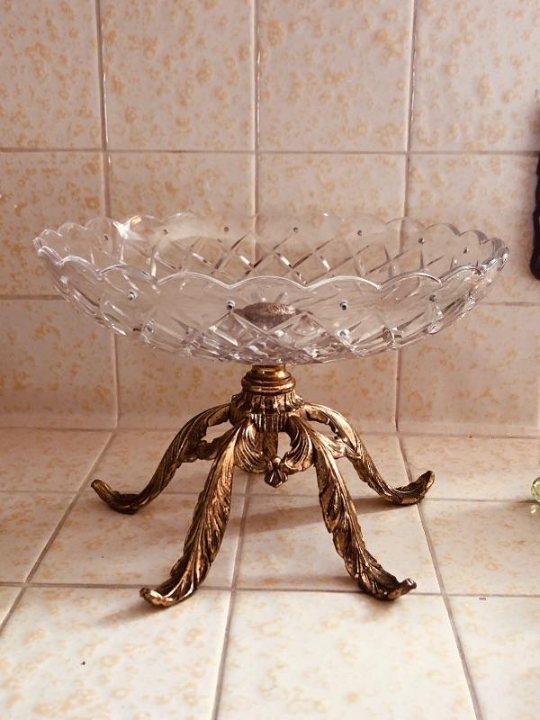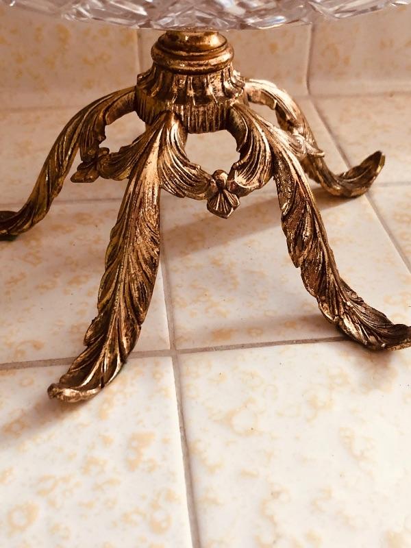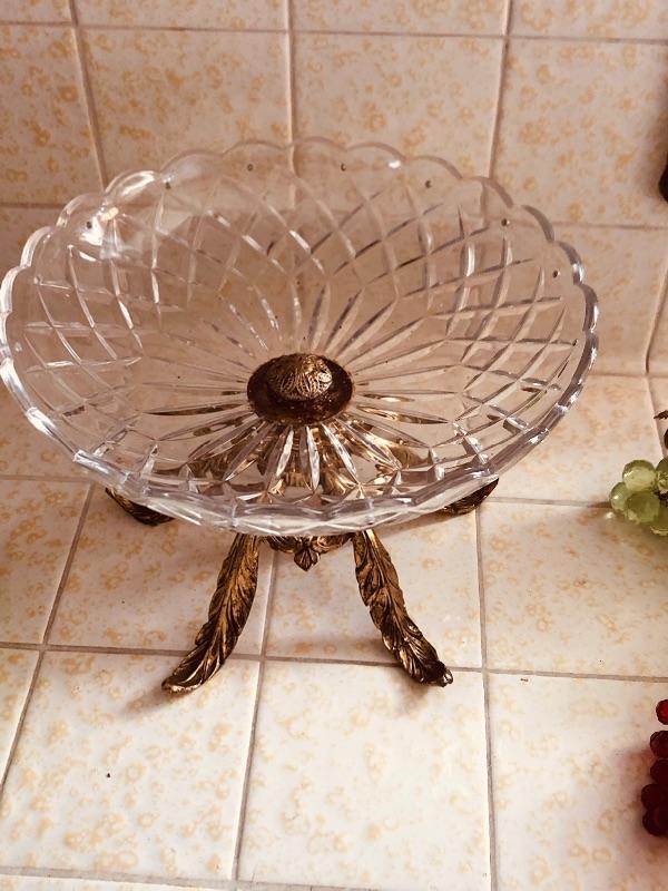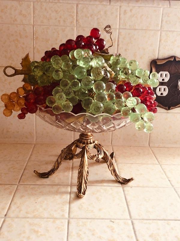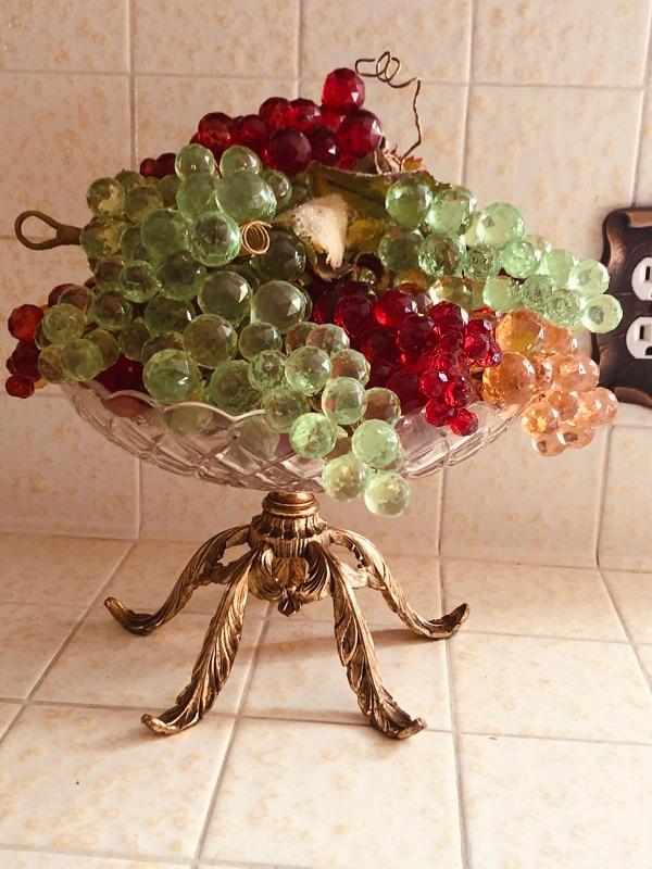 Vintage Brass Feather Pedestal Compote with Faceted Acrylic Grapes