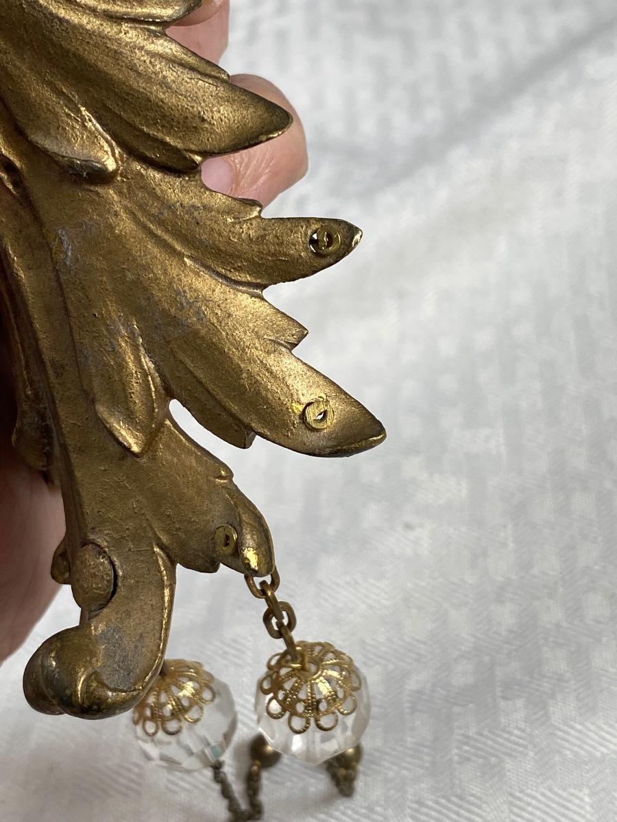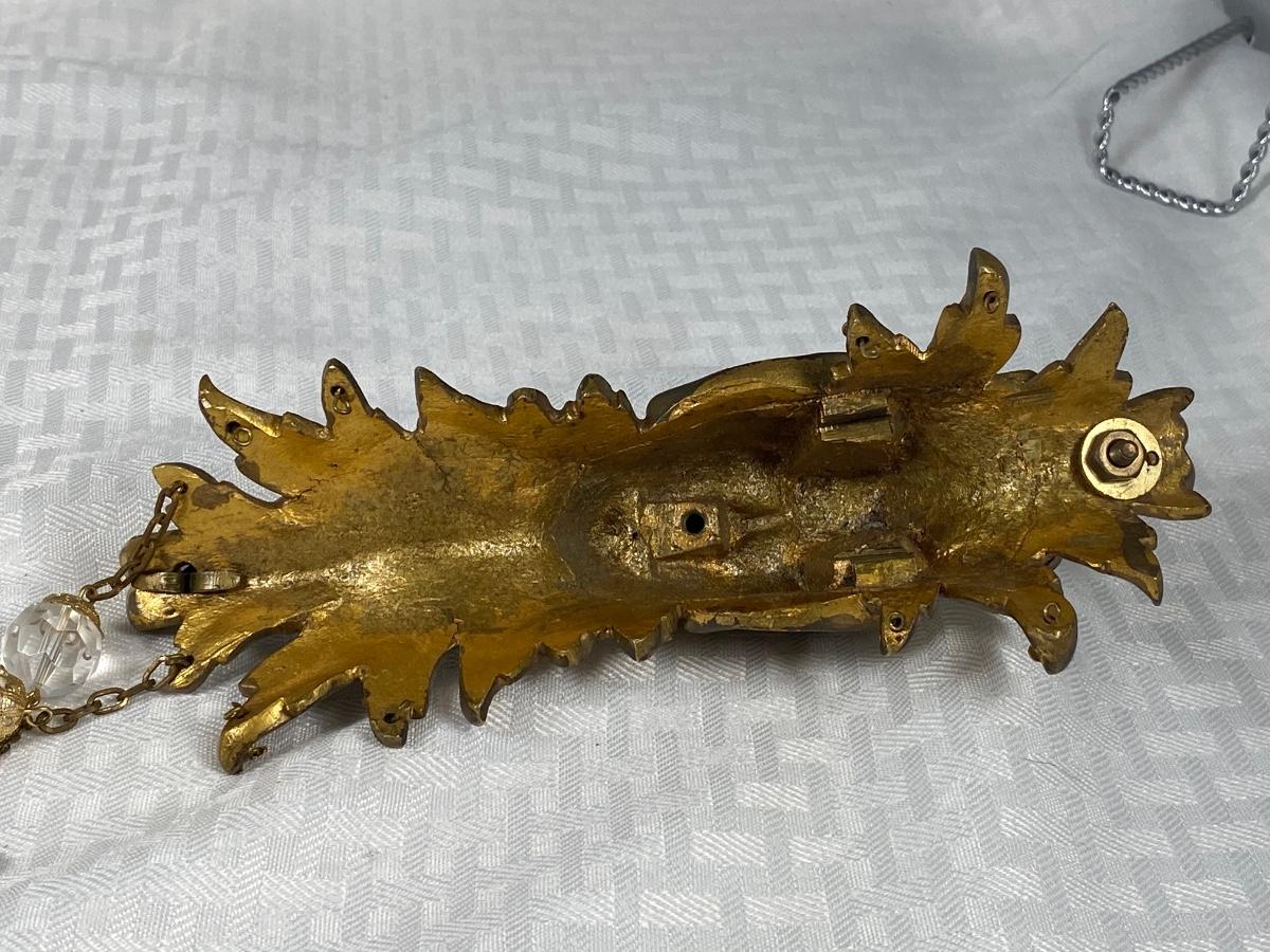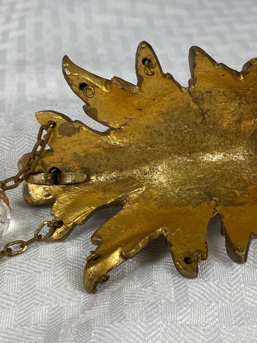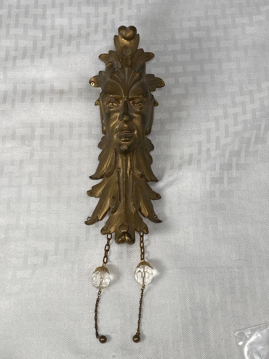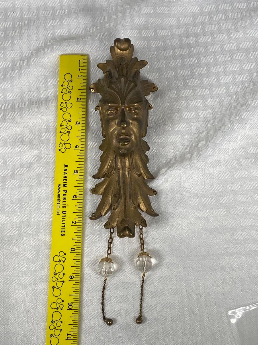 Vintage solid brass harlequin like face wall hanging. Interesting piece. Has two crystals hanging from it but can have more. See photos.