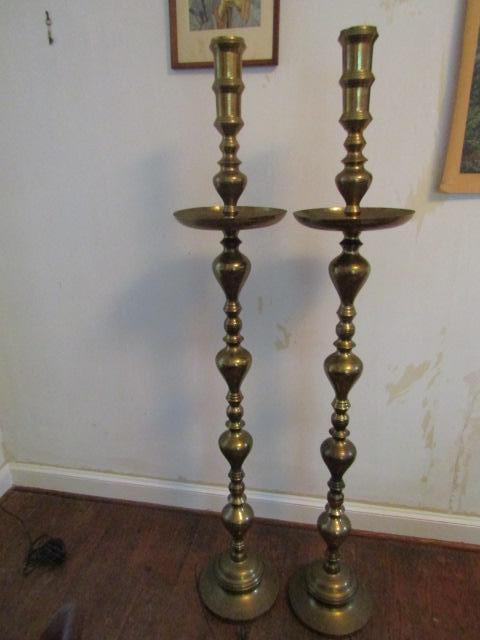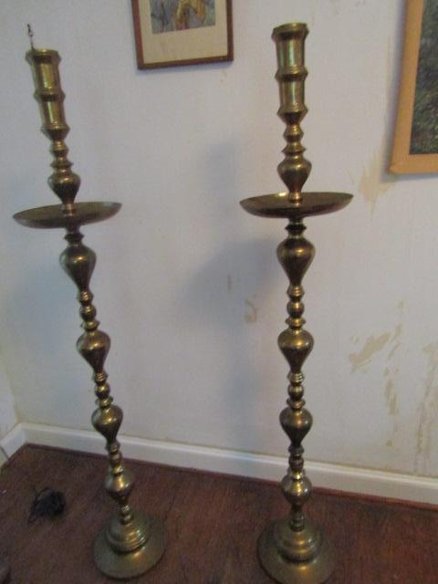 Vintage Brass Finish Floor Candle Holders- Approx 60" Tall