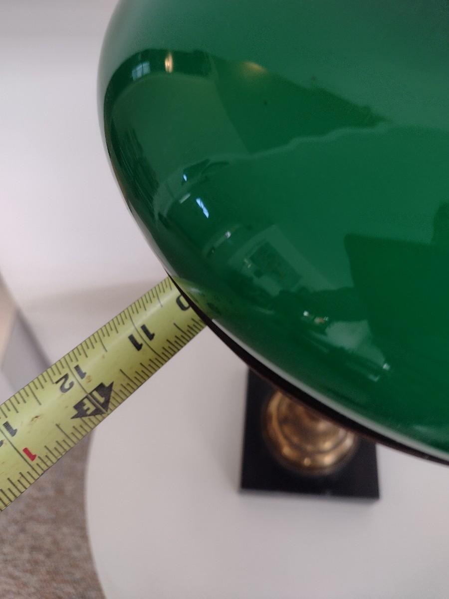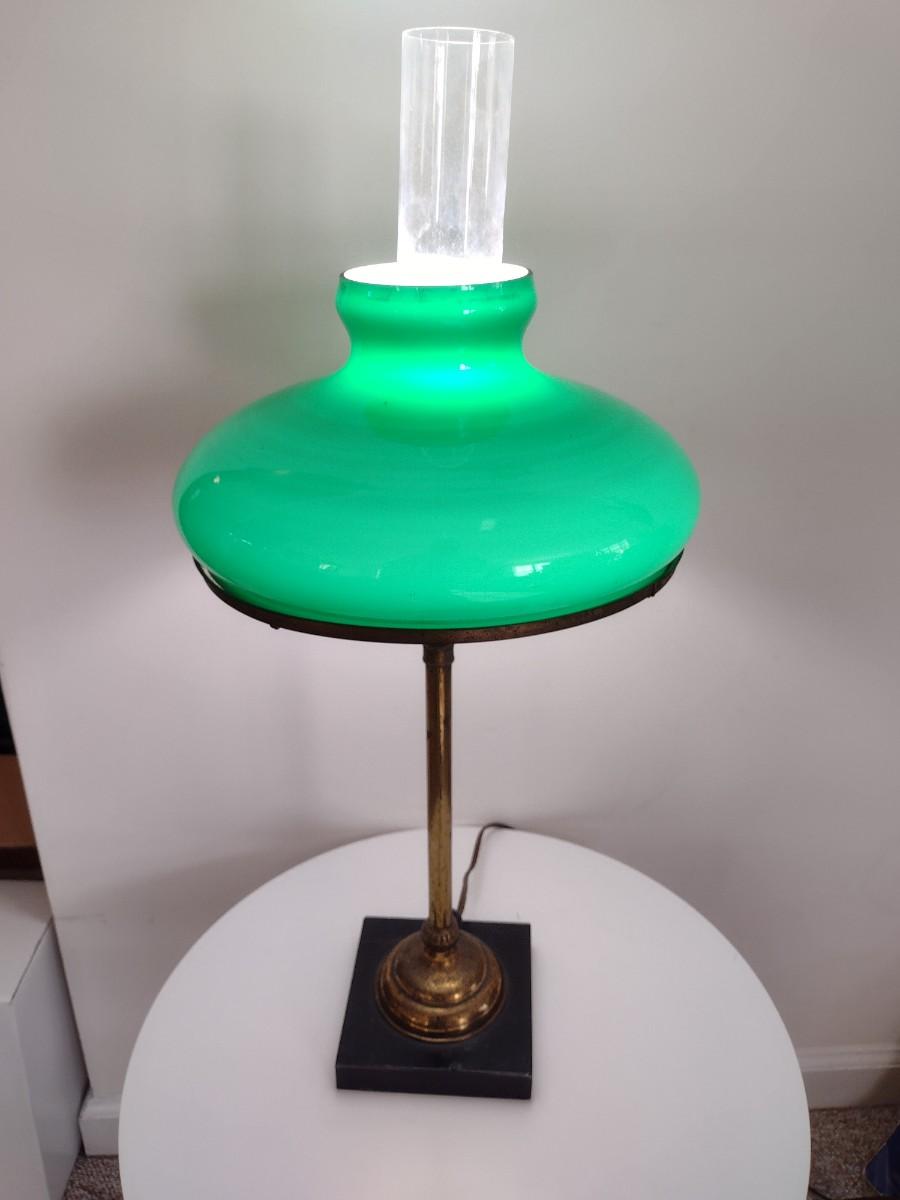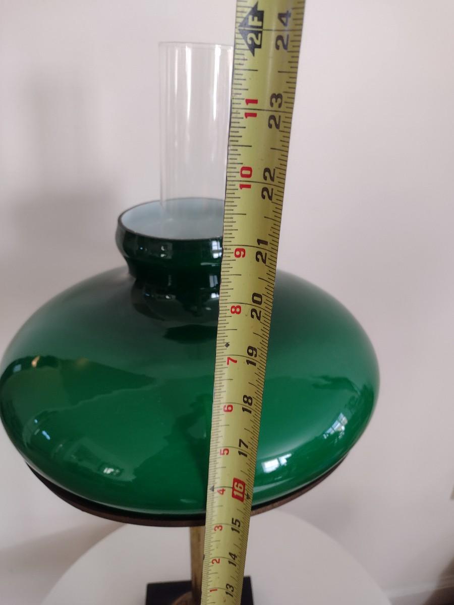 Vintage Brass Finish Post Table Lamp with Green Glass Shade