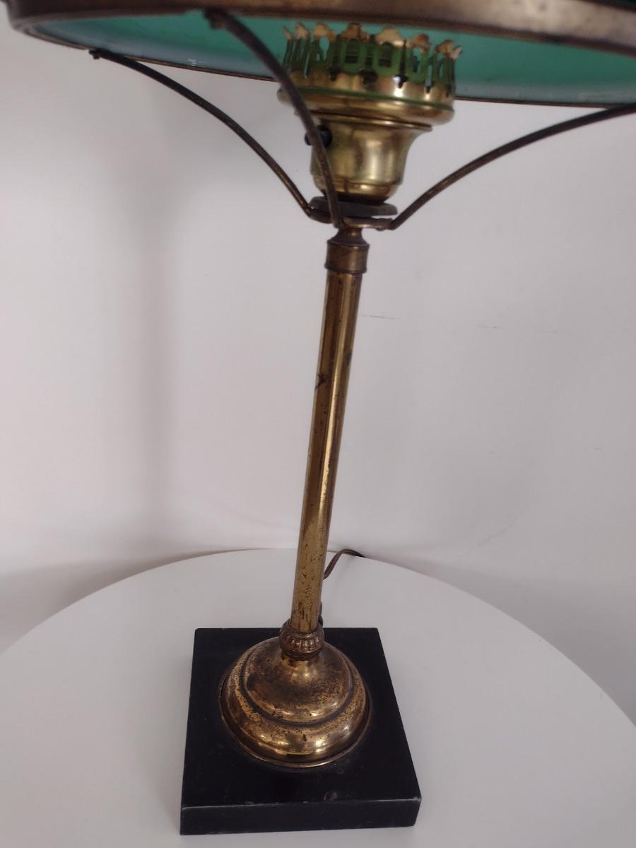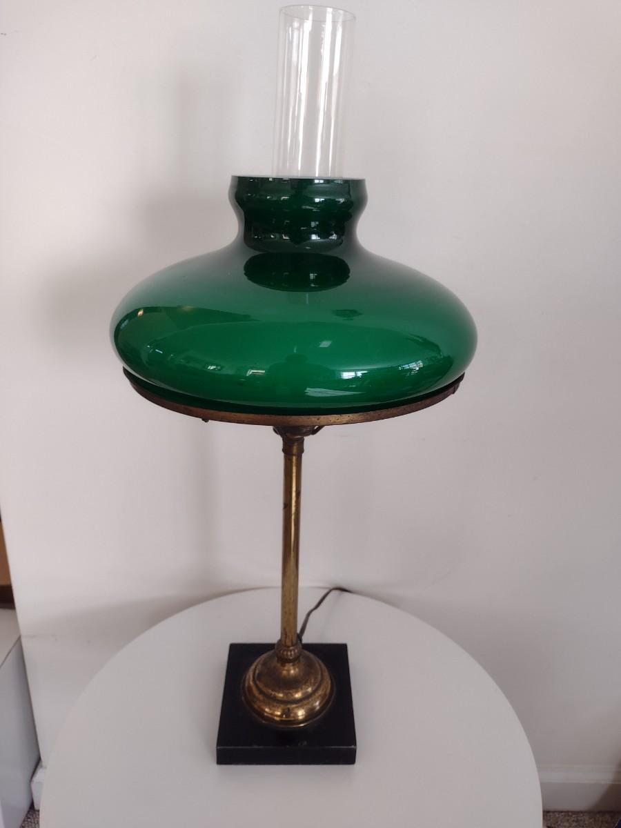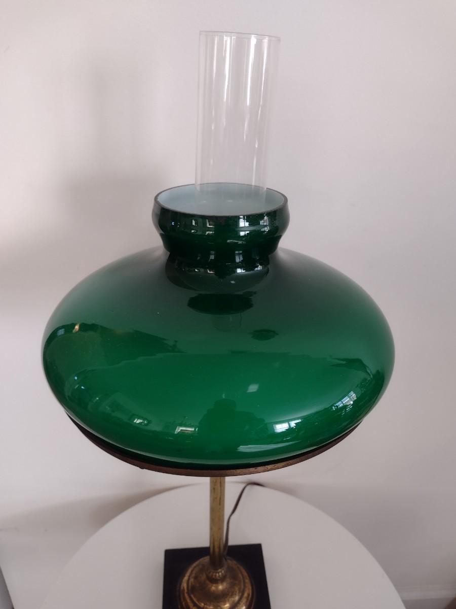 Vintage Brass Finish Post Table Lamp with Green Glass Shade