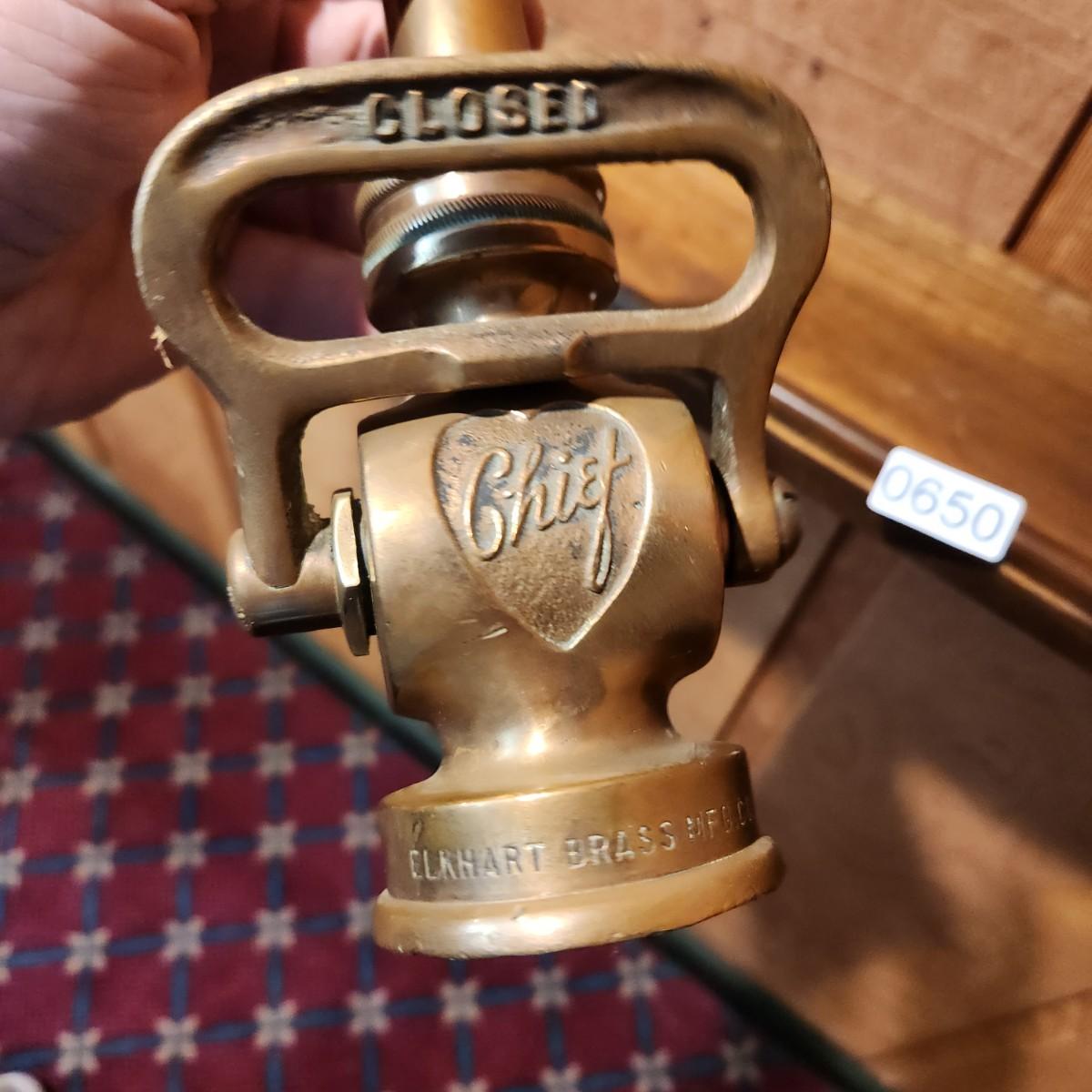 Vintage Brass Fire Hose Nozzle 8.5" Elkhart Cheif