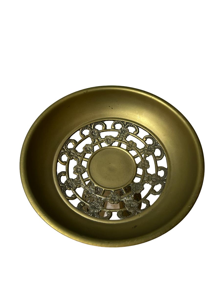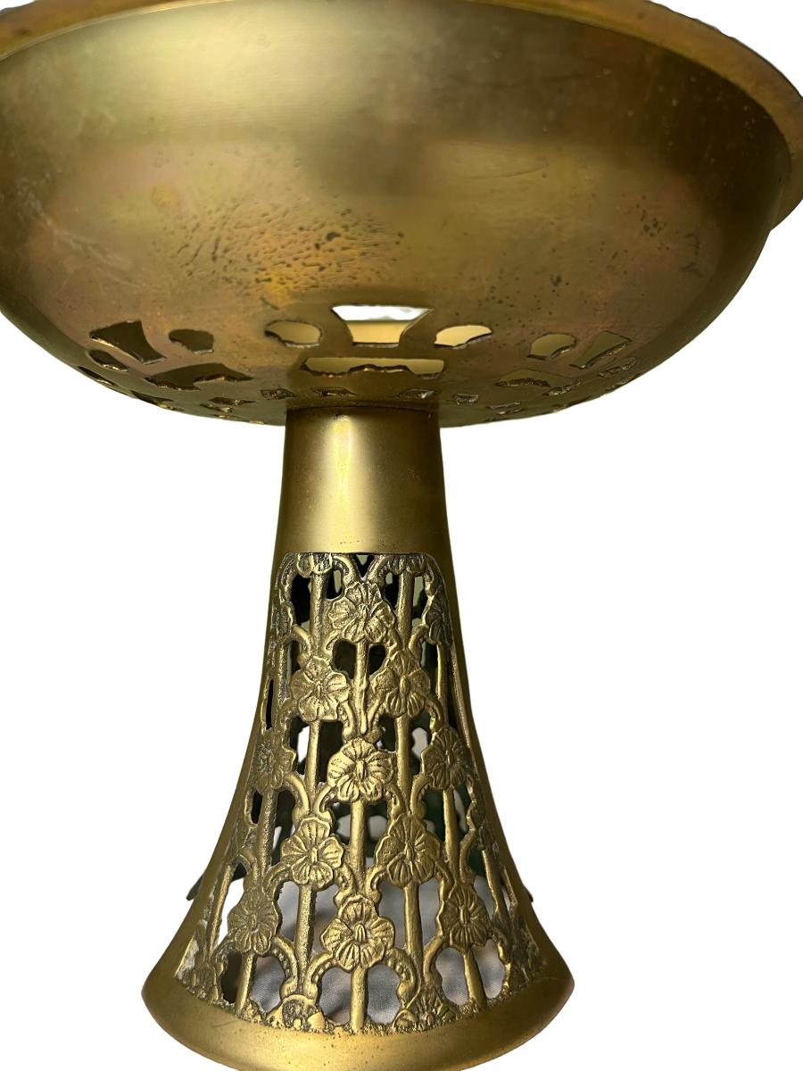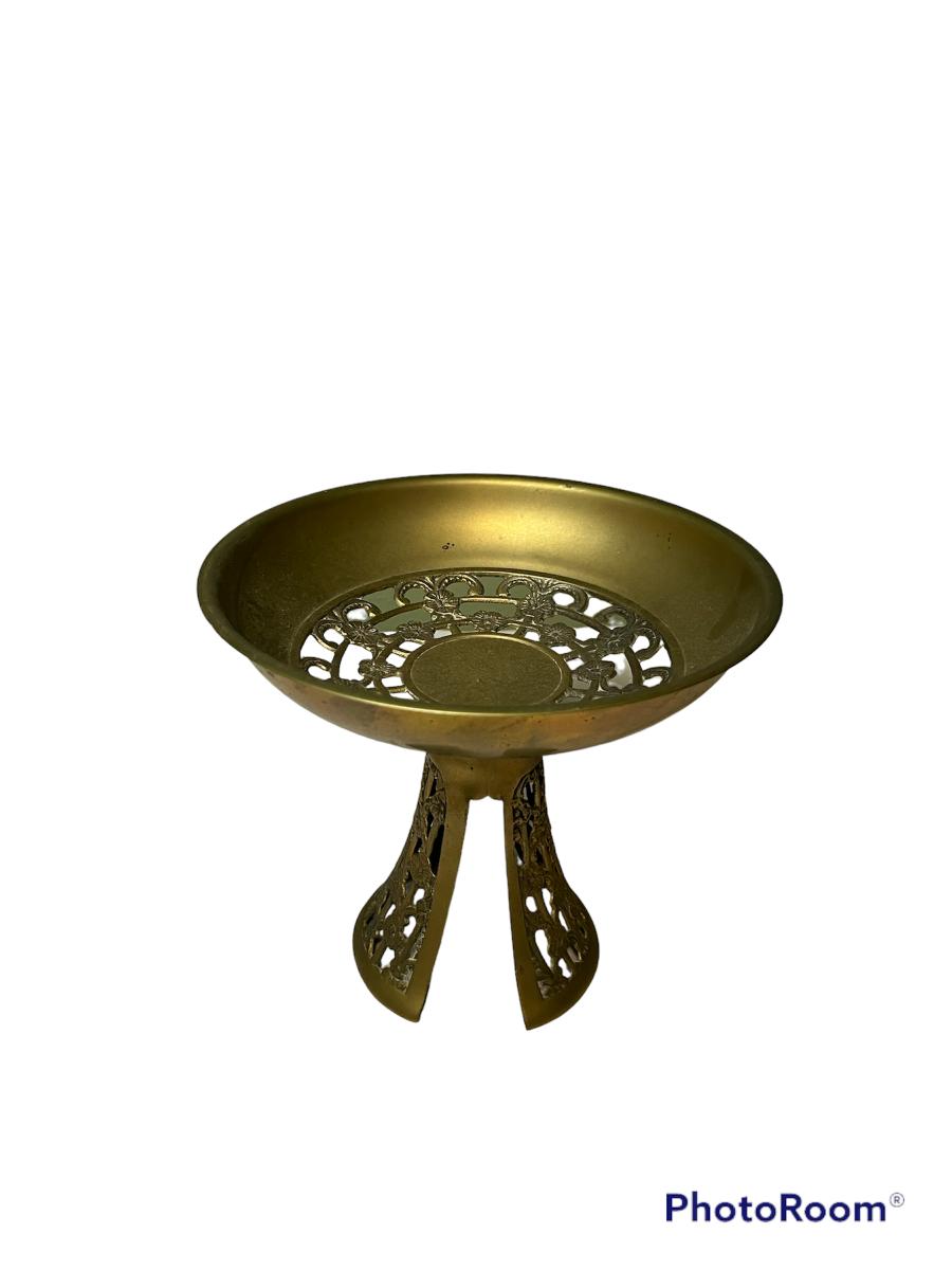 Vintage brass footed bowl measures 8 1/2 inches tall 9 3/4” inches wide