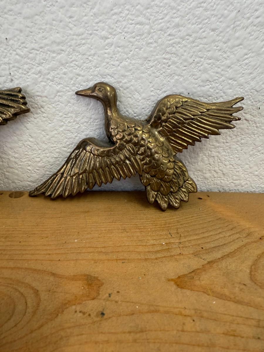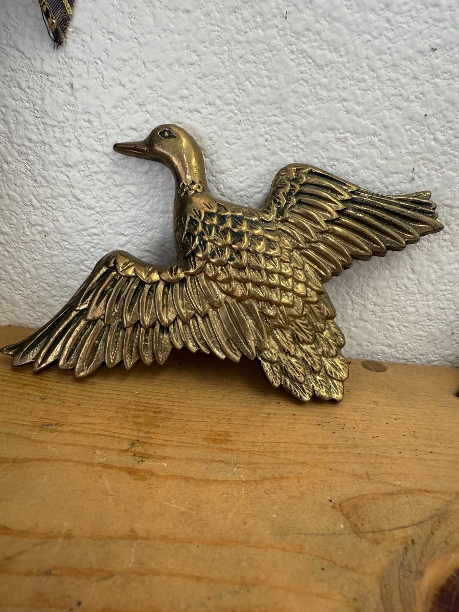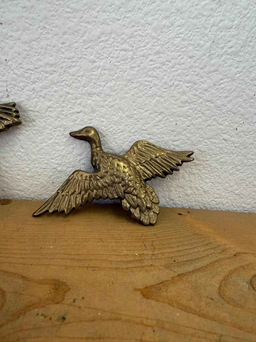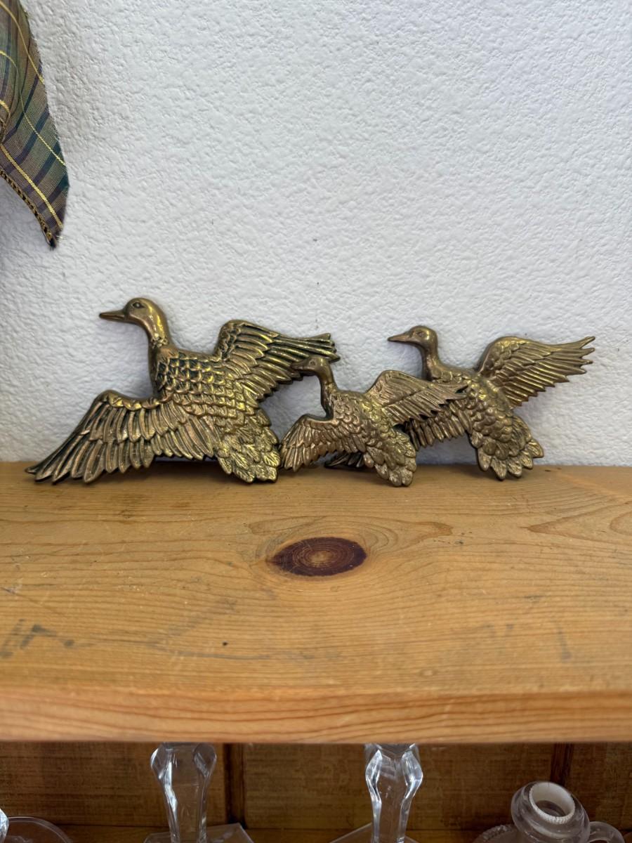 This unique lot of 3 vintage brass flying ducks wall decor pieces adds a classic touch to your home, perfect for nature-inspired decor.