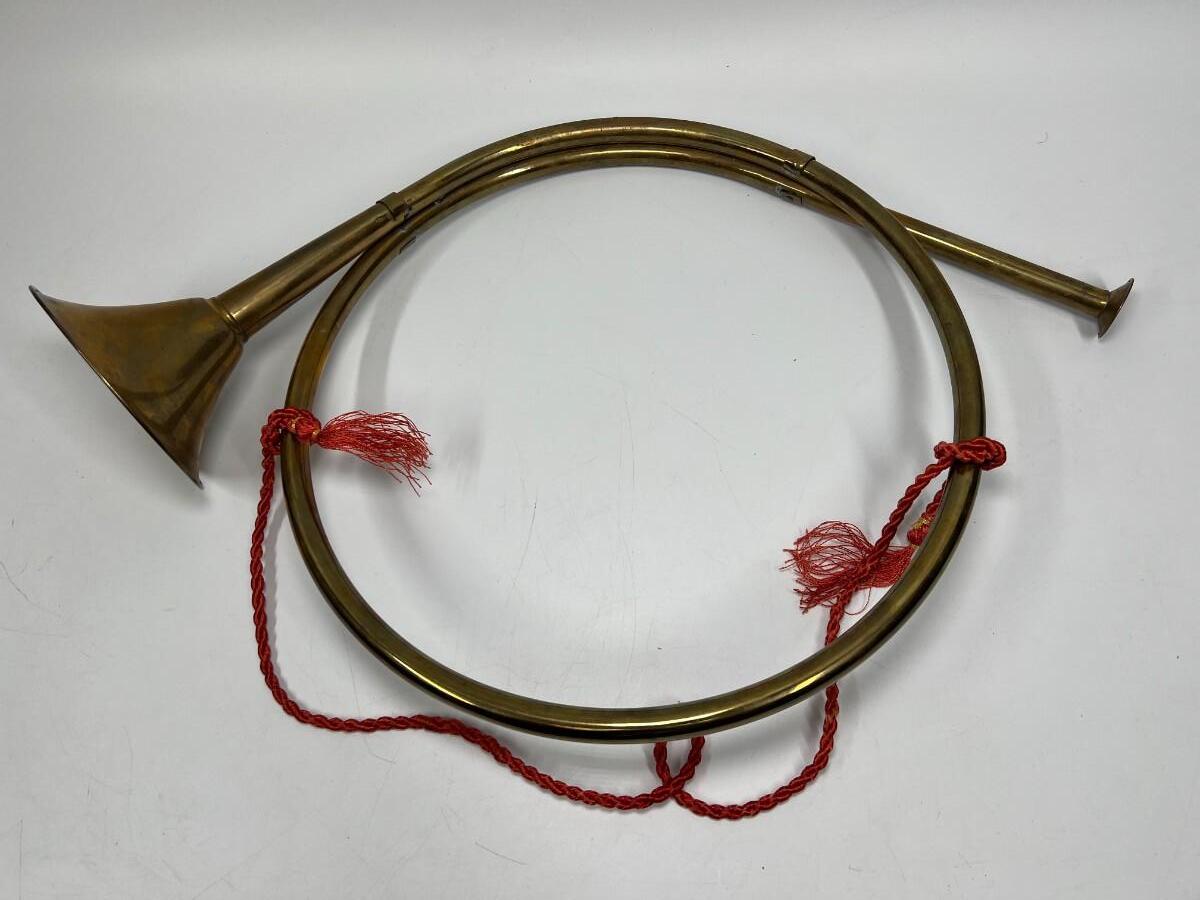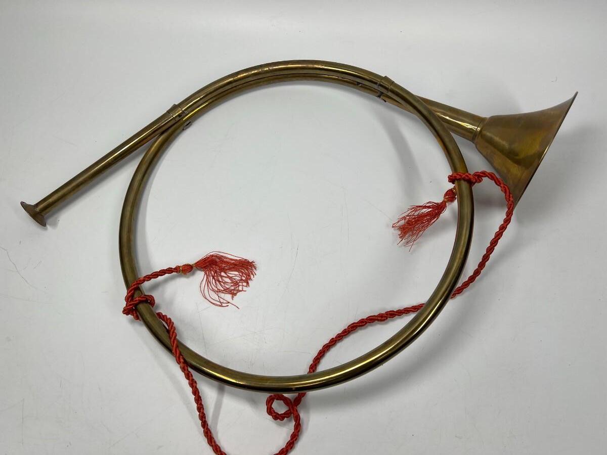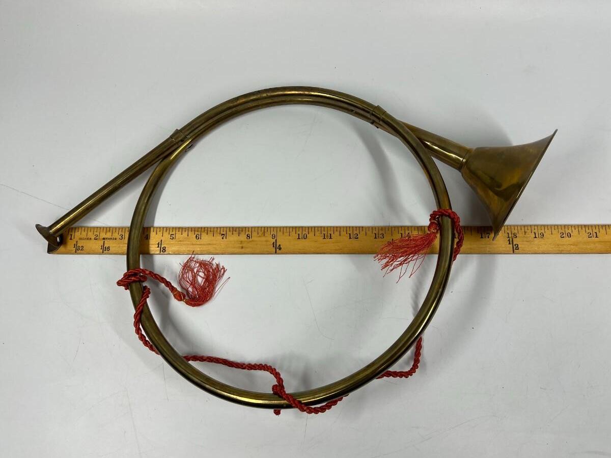 Vintage Brass French Horn Bugle Musical Decor, there is some light vintage wear, but there is no significant damage to the horn and is in overall good displayable condition.