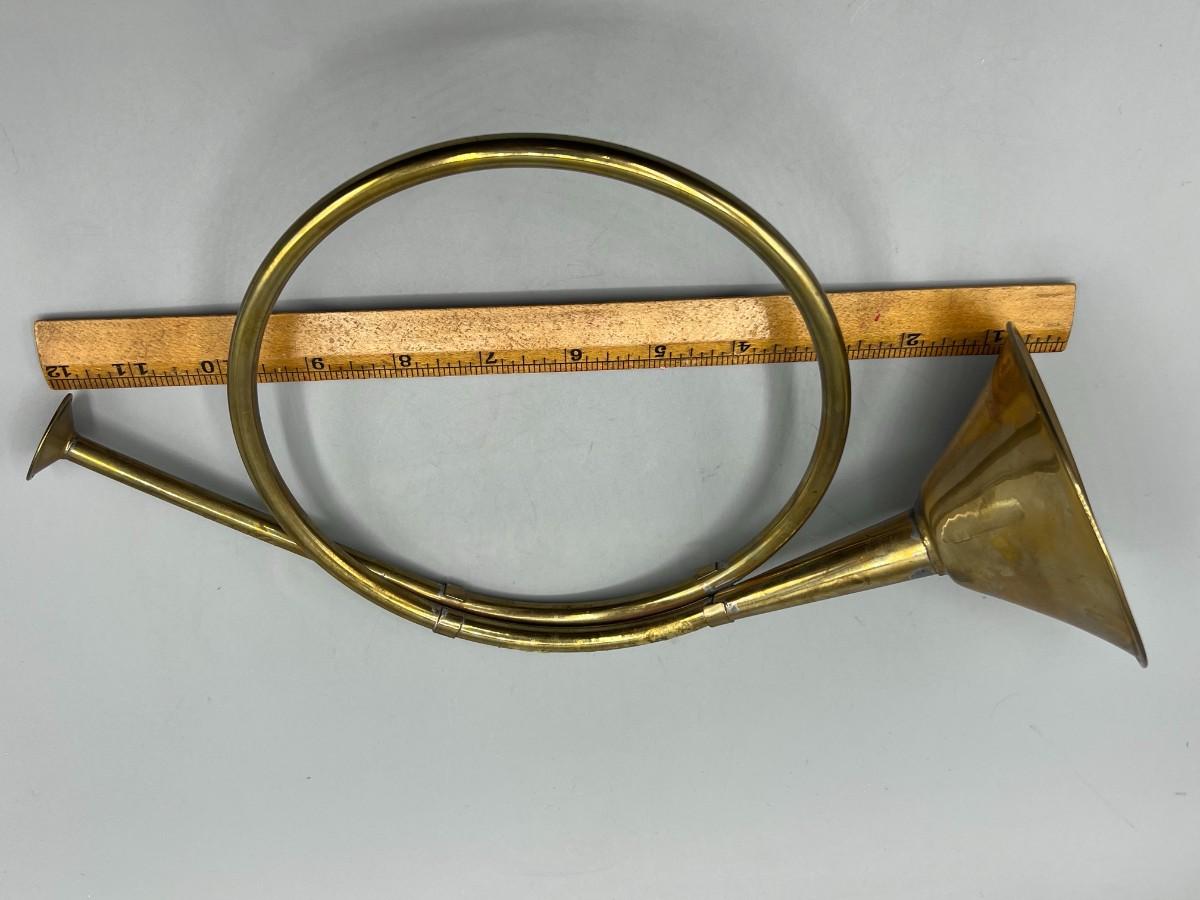 Vintage Brass French Horn Bugle Musical Home Decor, there is some light vintage wear, but there is no signifncant damage and is in overall good displayable condition. Check pictures for more details and for sizing.