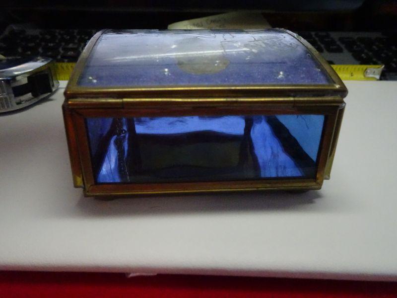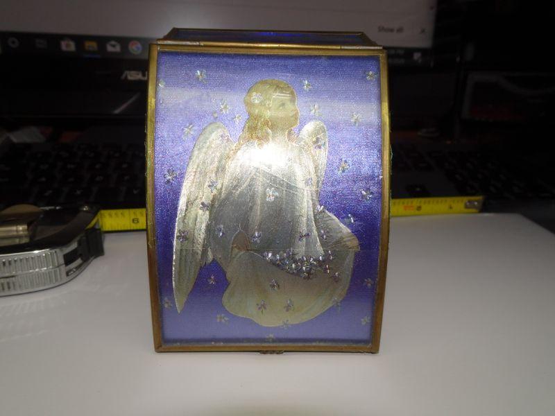 Vintage Brass & Glass Victorian Angel Jewelry Box, Ring Box, Trinket Box