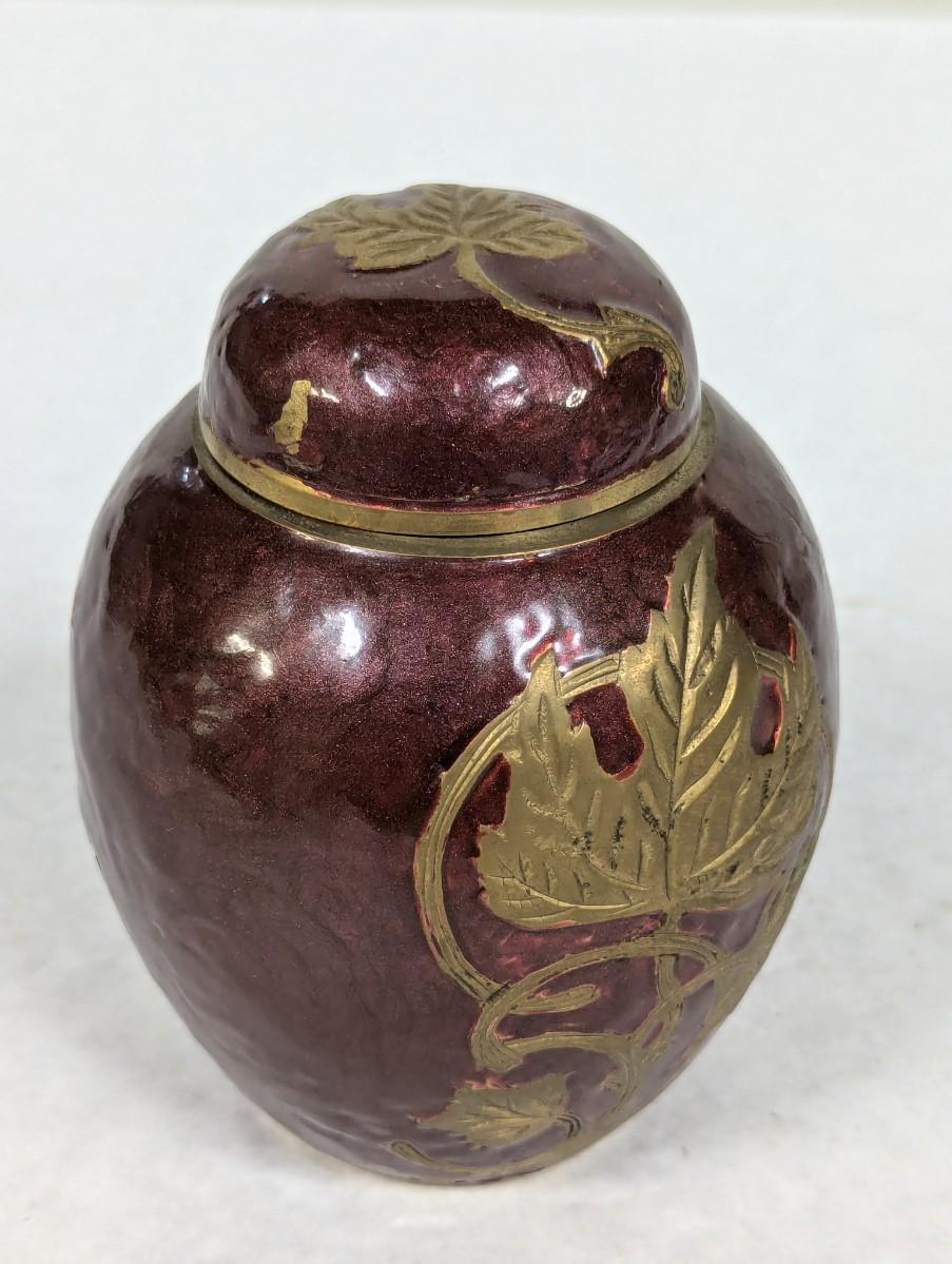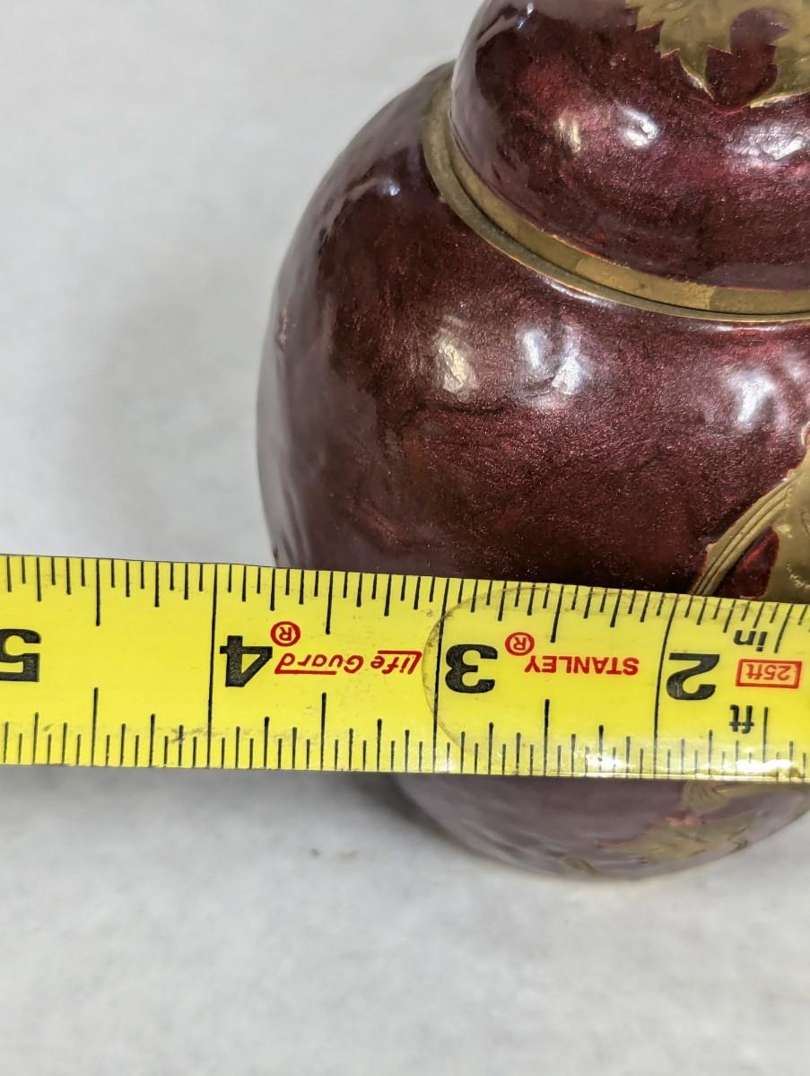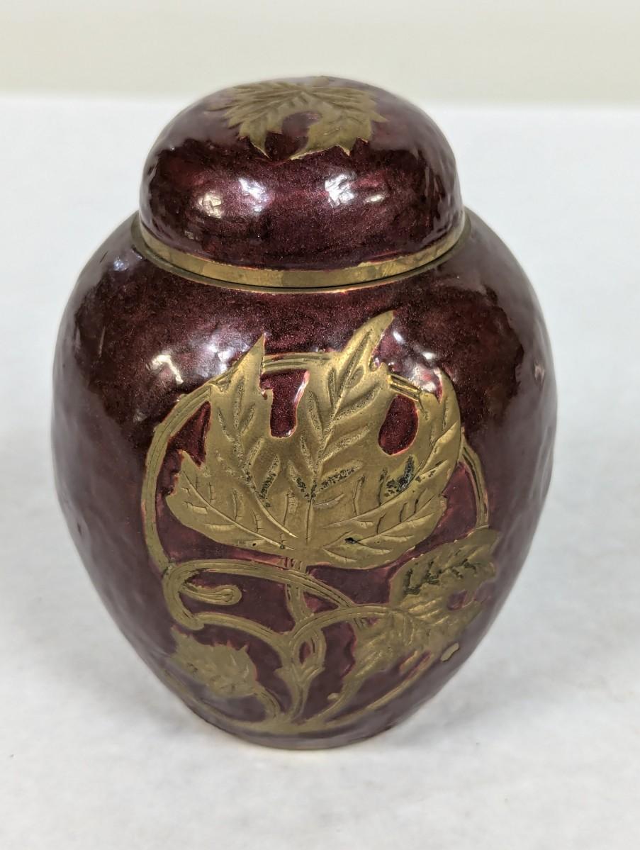 Vintage Brass Golden Brown Enamel Lidded Ginger Jar