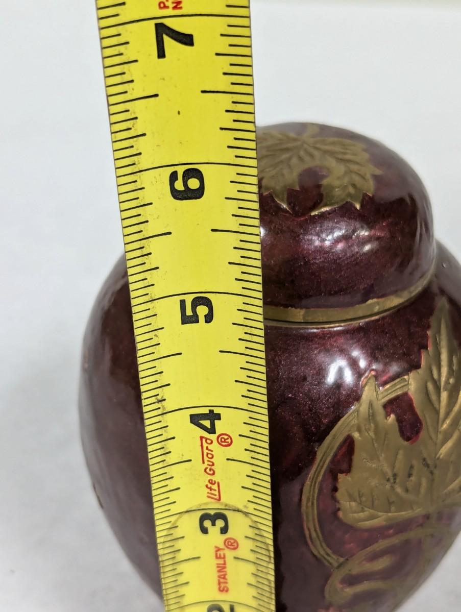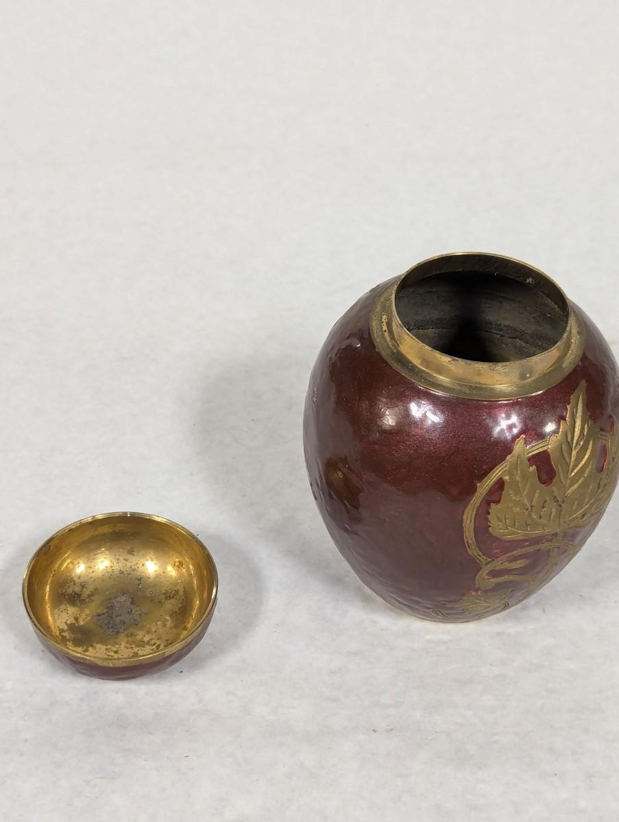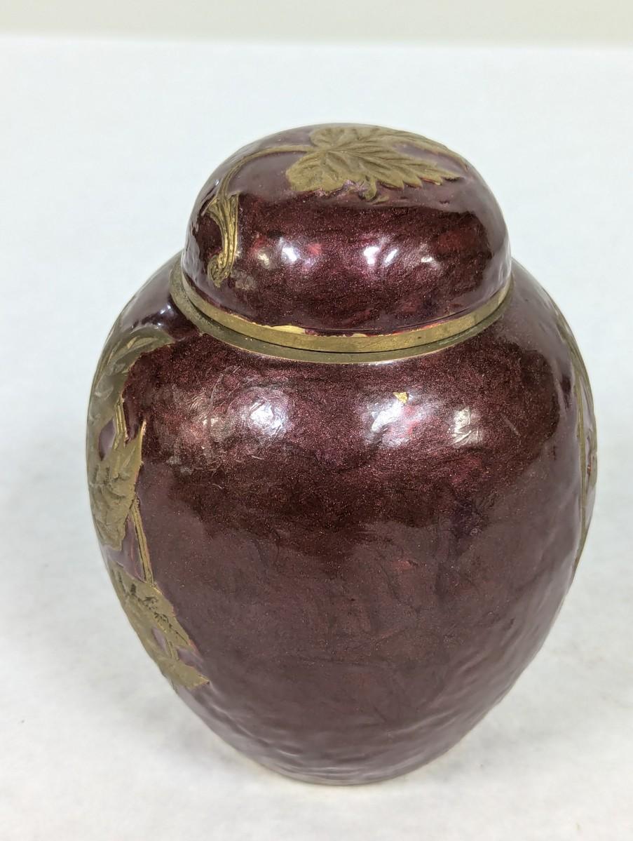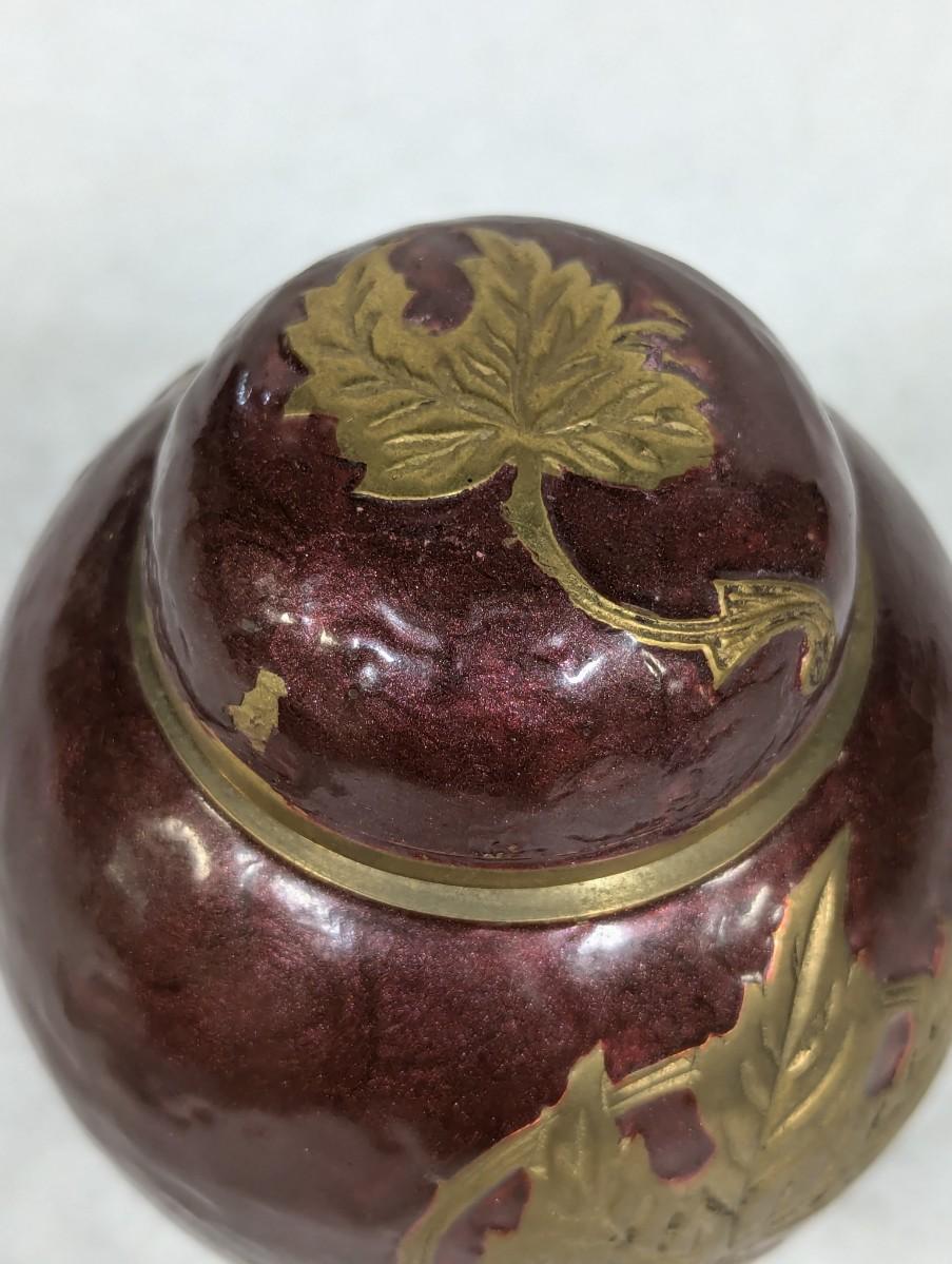 Vintage Brass Golden Brown Enamel Lidded Ginger Jar