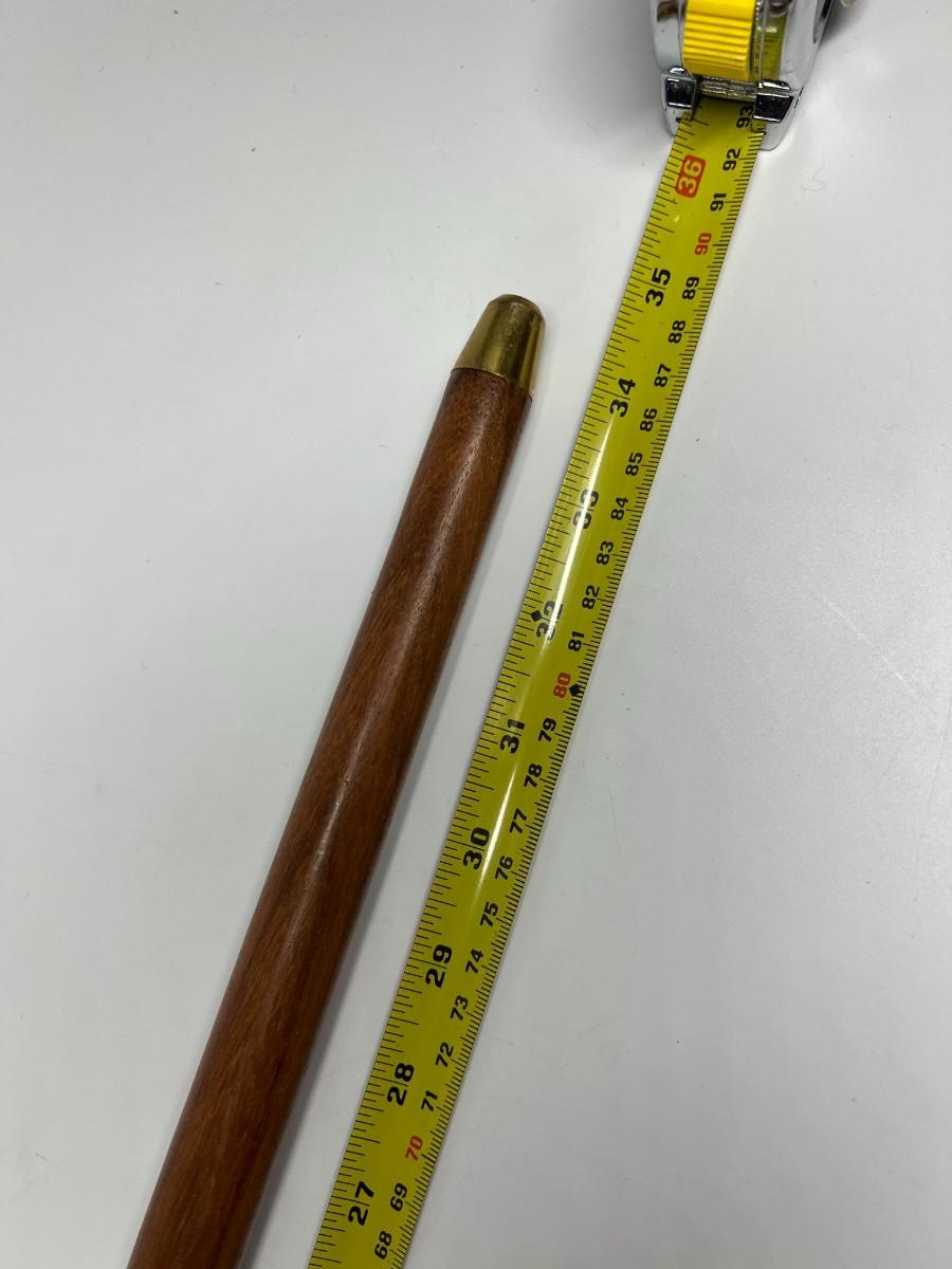 There is no significant damage to the wood or the brass handle and is in overall good vintage condition. Check pictures for more details and for sizing.