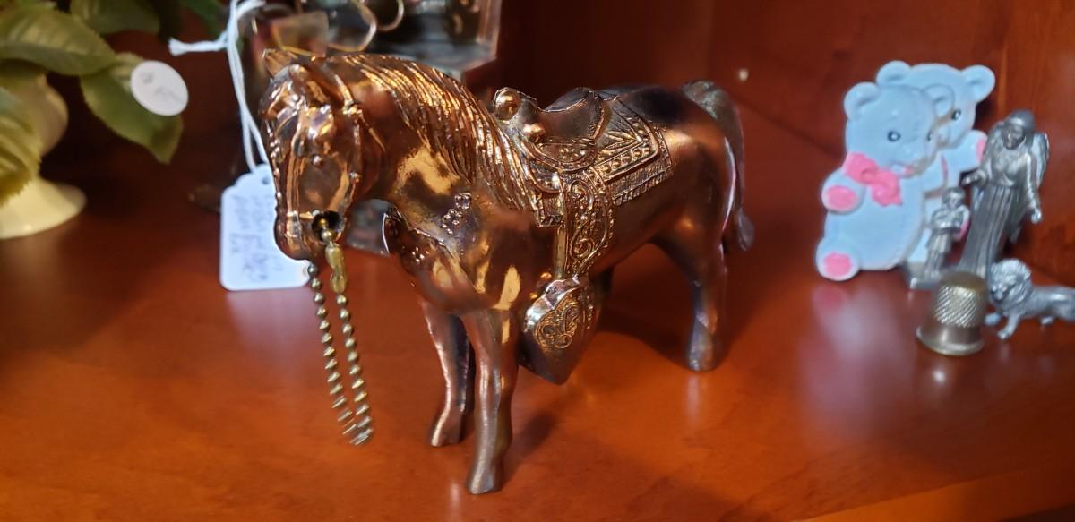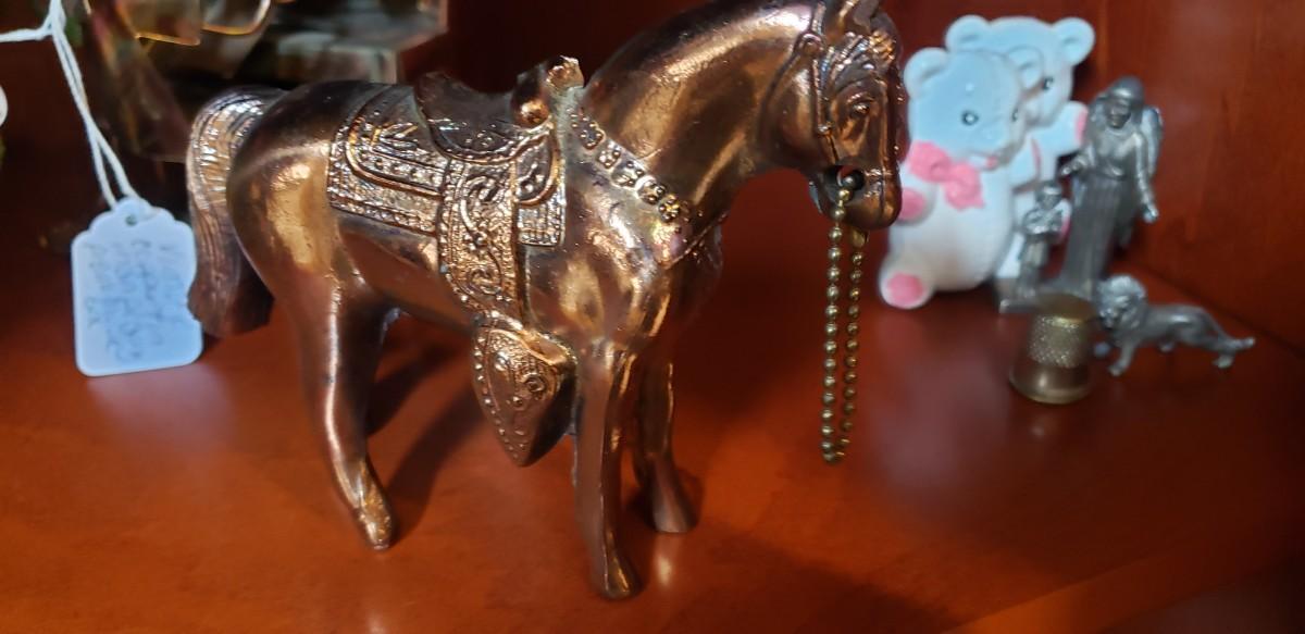 Vintage 1950s brass horse. This was once given as a carnival prize!
