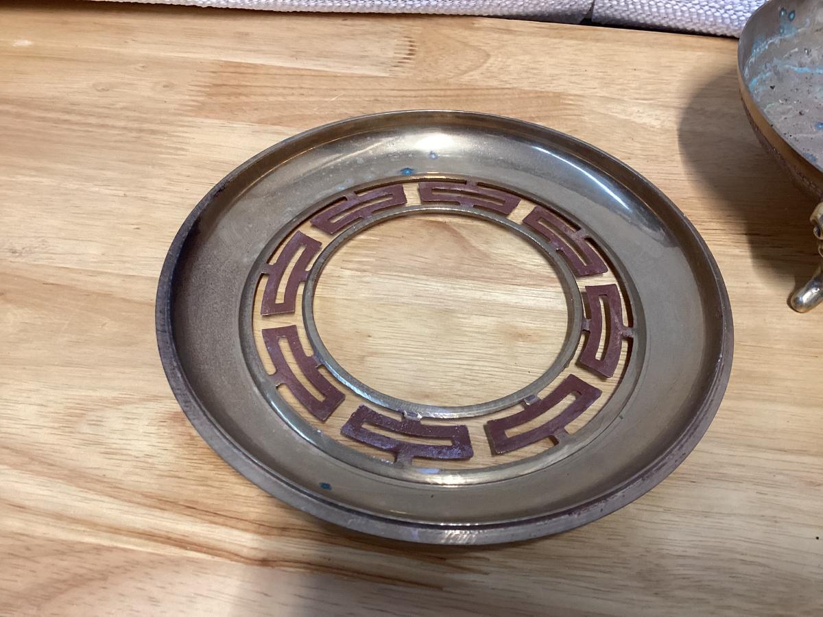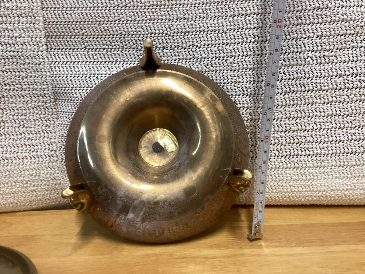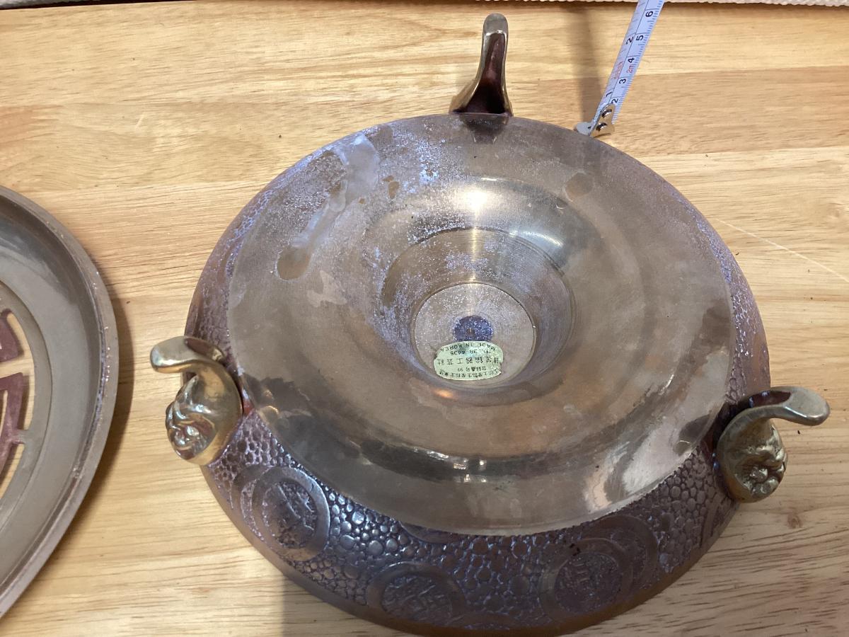 vintage brass incense burner, also known as a censer or ashtray, featuring Chinese zodiac signs on the sides.