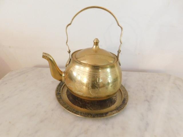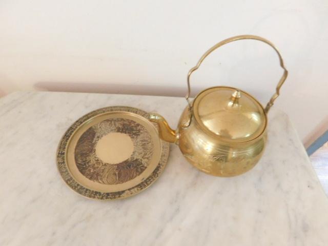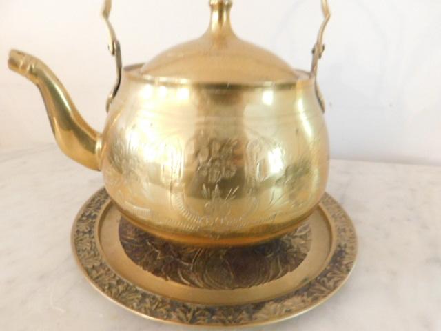 Vintage Brass Kettle with Drip Plate