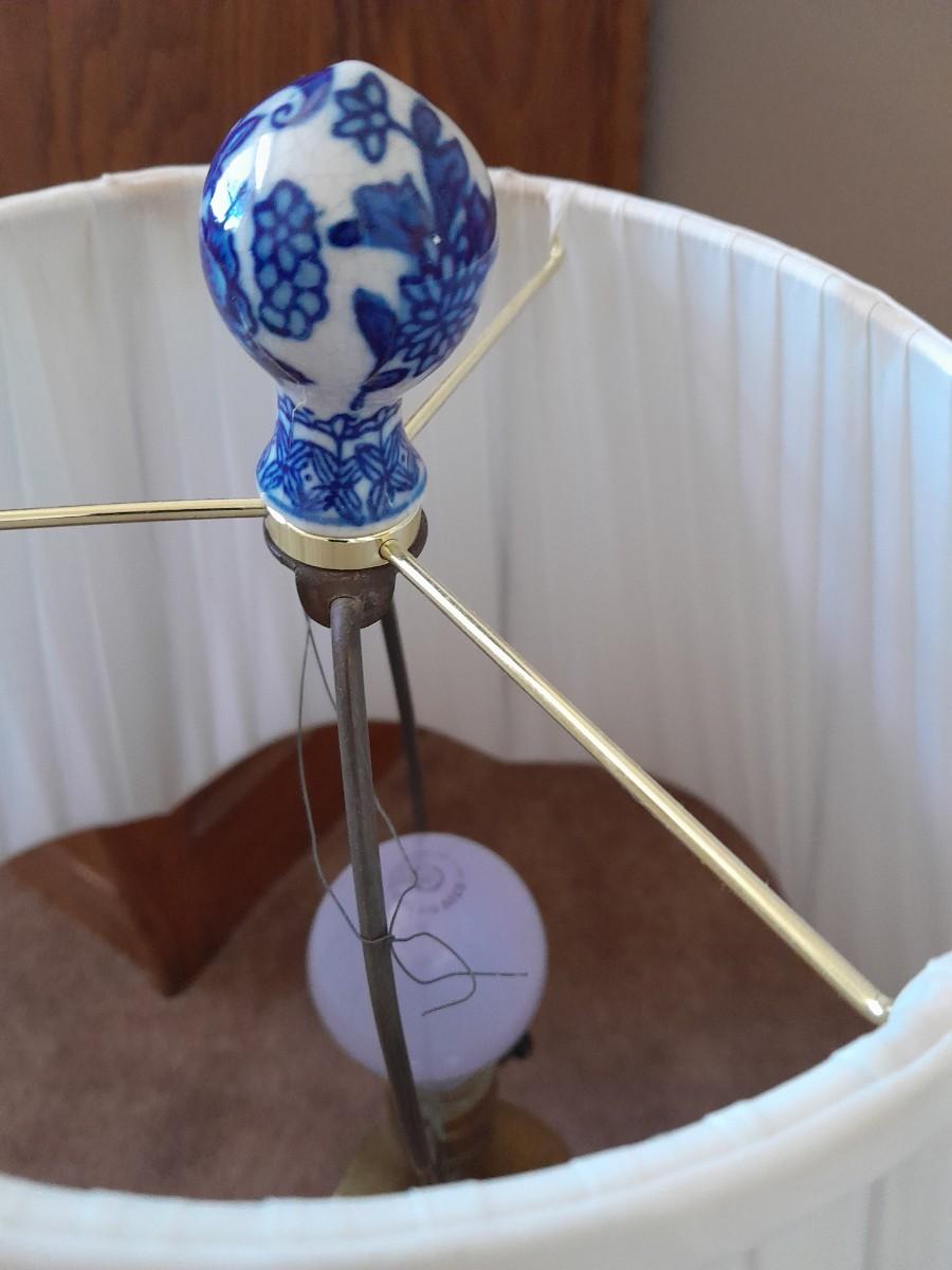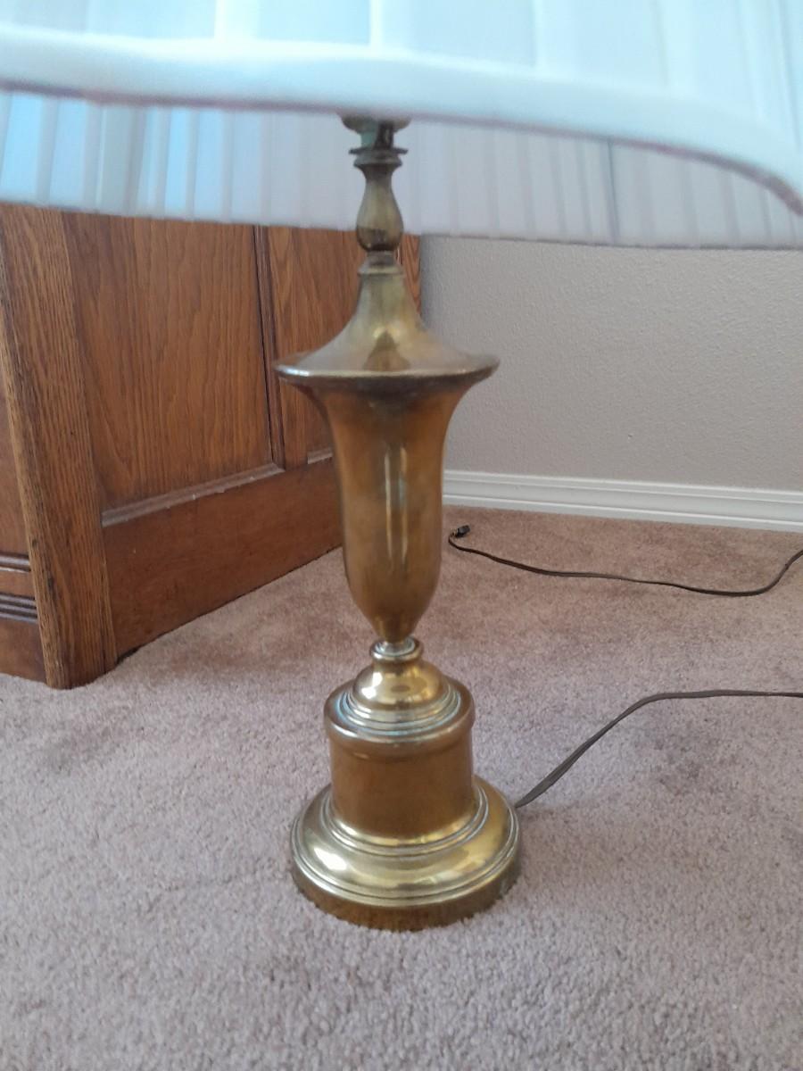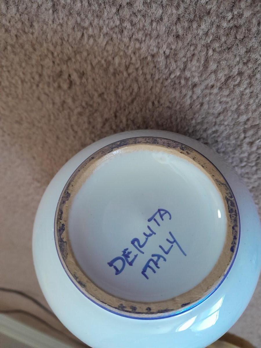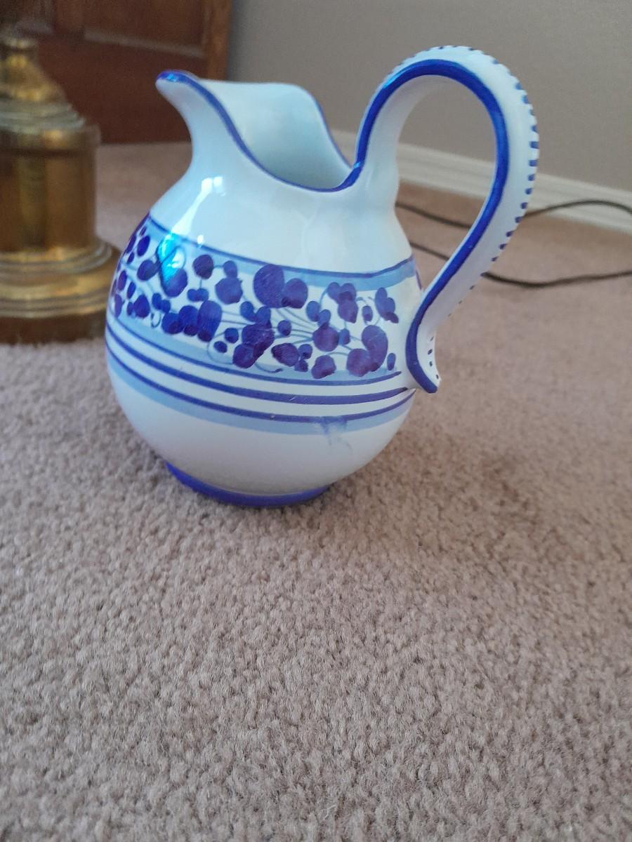 VINTAGE BRASS LAMP, DELFT BLUE HAND PAINTED GIRL, AND ITALIAN CREAMER