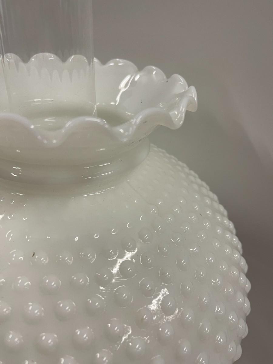 Vintage Brass Lamp with White Hobnail Glass Shade