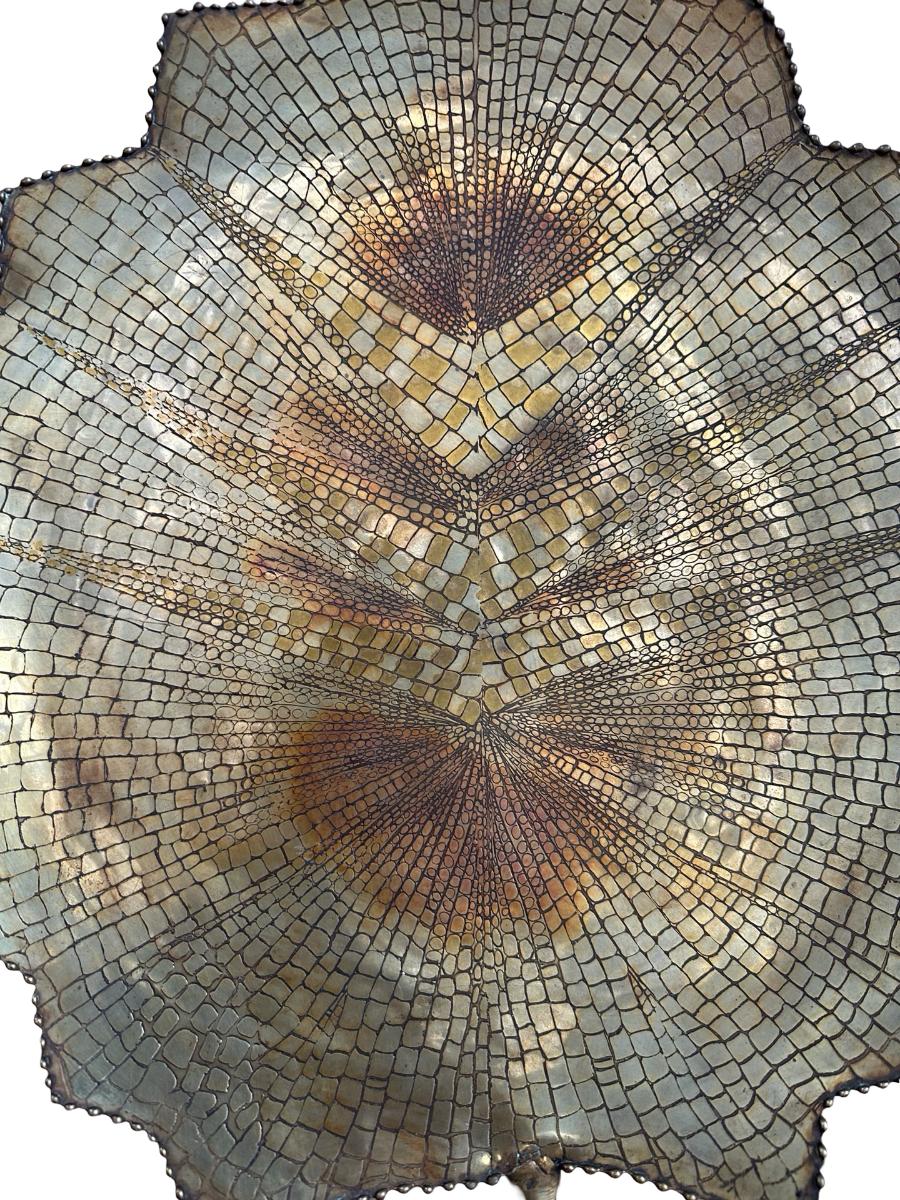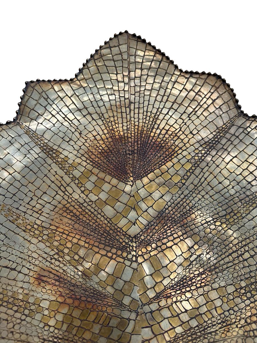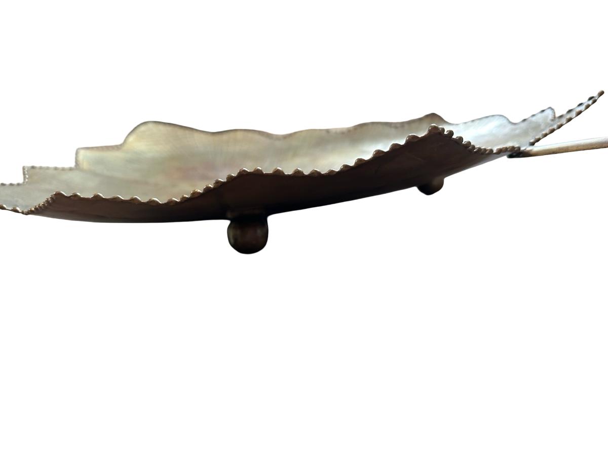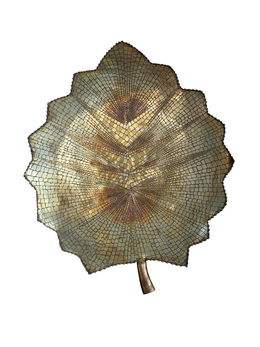 Large Vintage Brass Leaf-Shaped Decorative Tray – Textured & Etched Design – Made in India