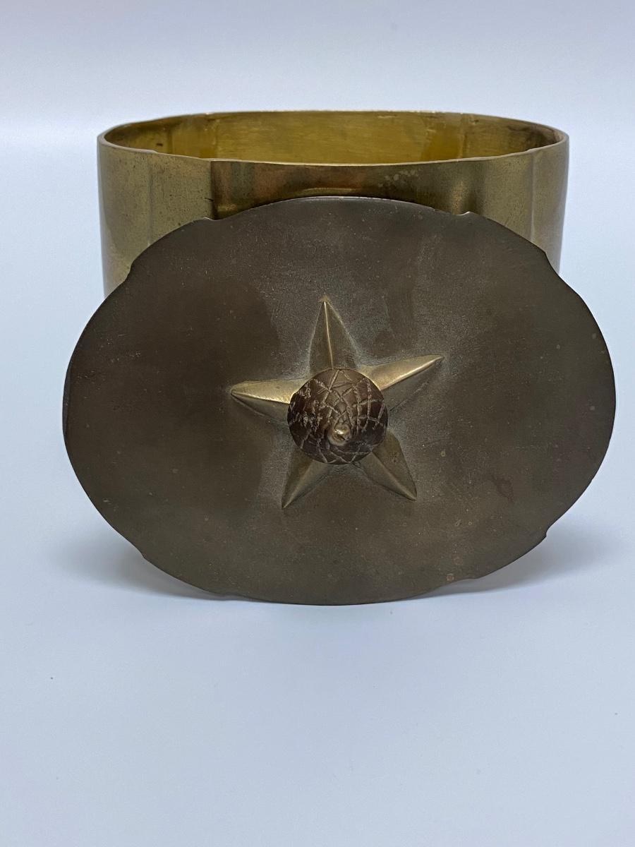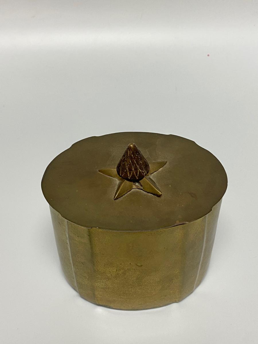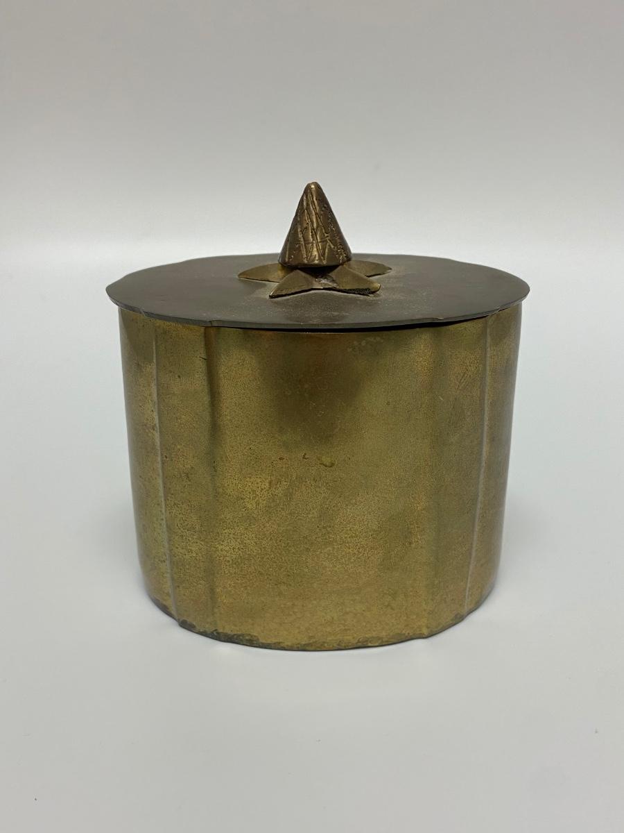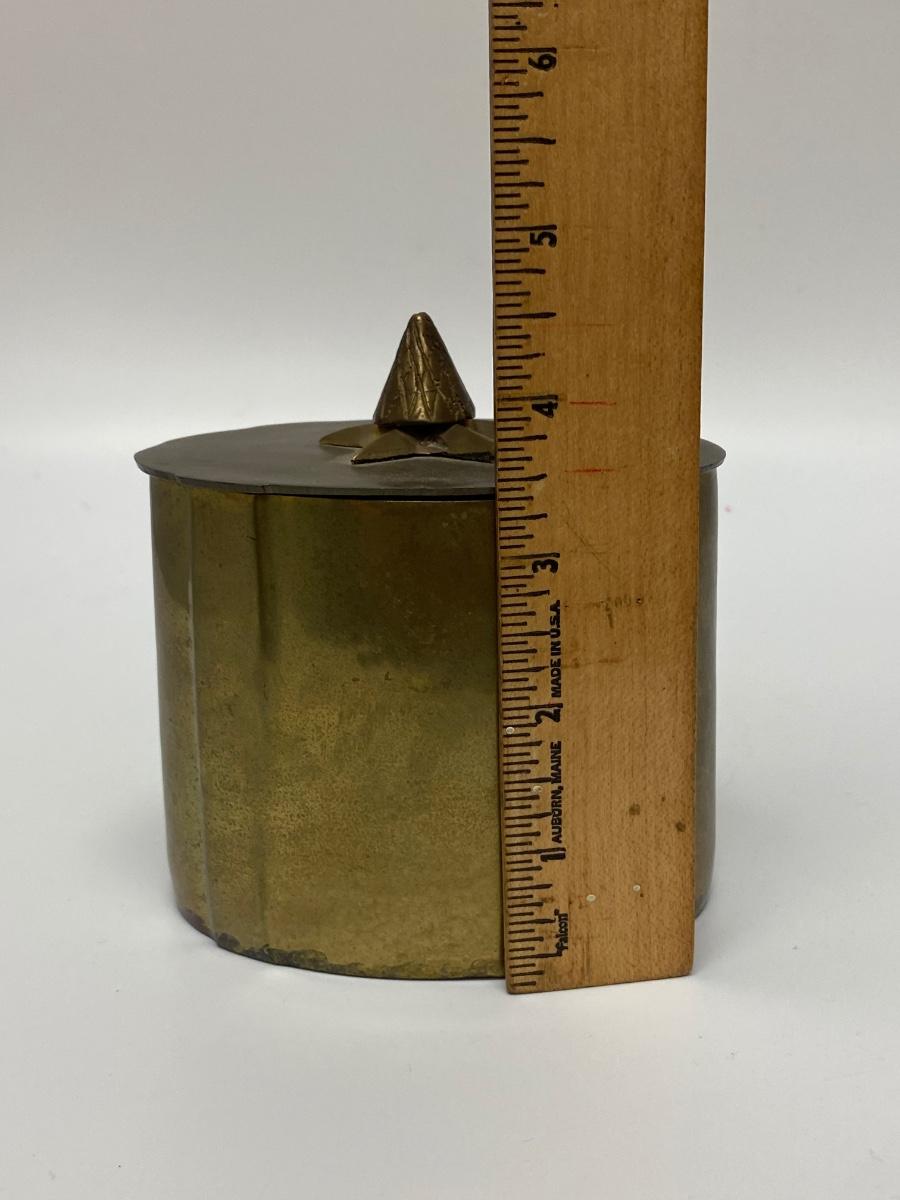 Vintage brass canister box. About 4" size. in good condition, some light wear. Lid does not fit tight.