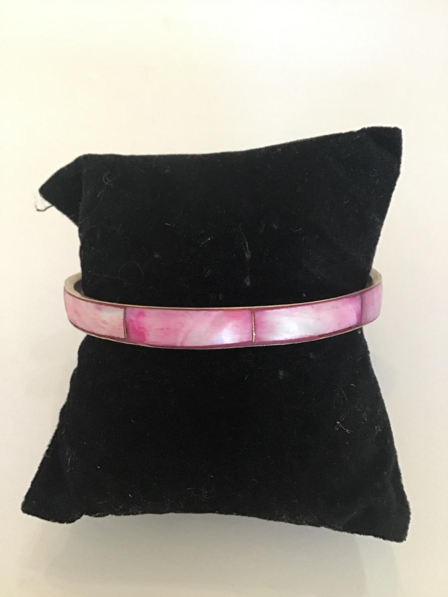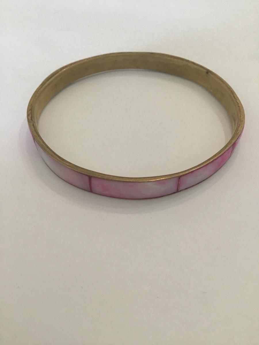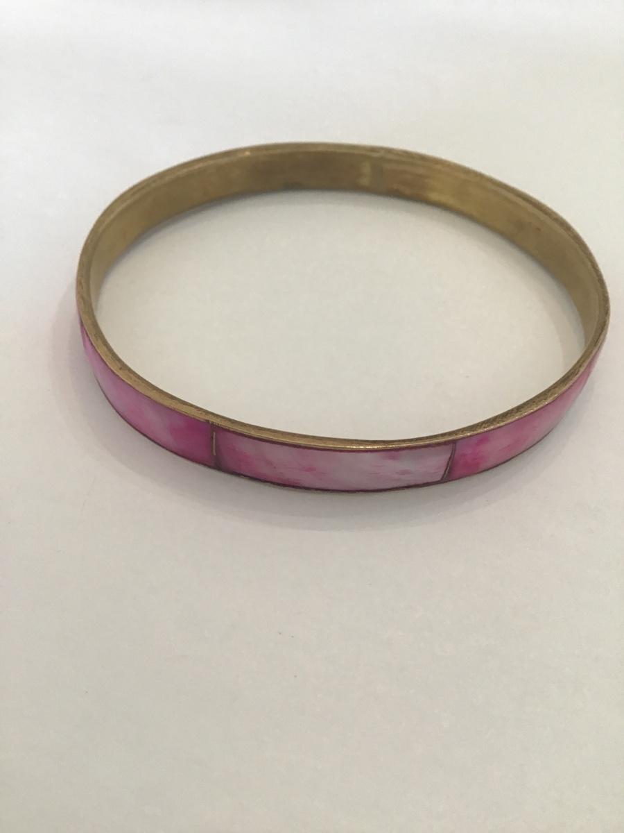Vintage brass light pink Shell inlay bangle bracelet