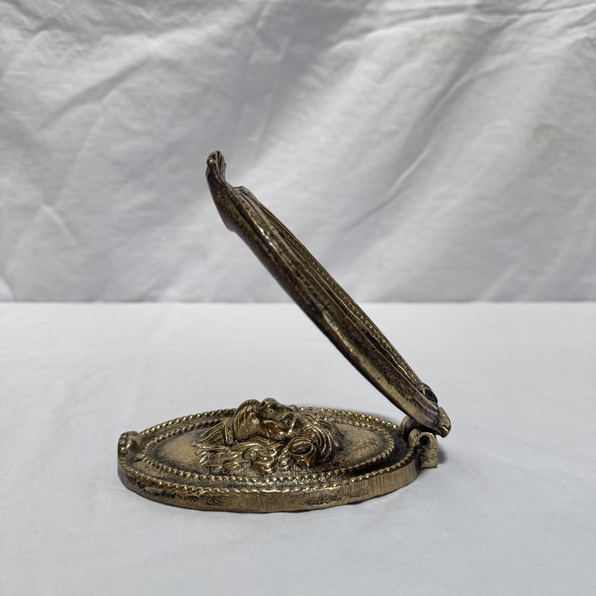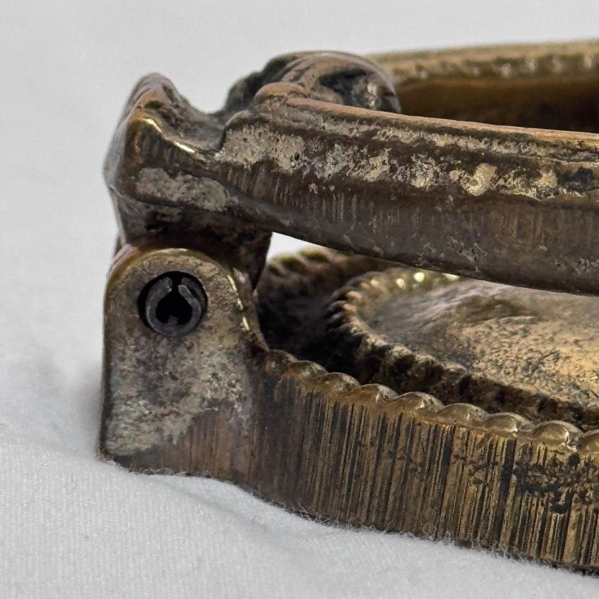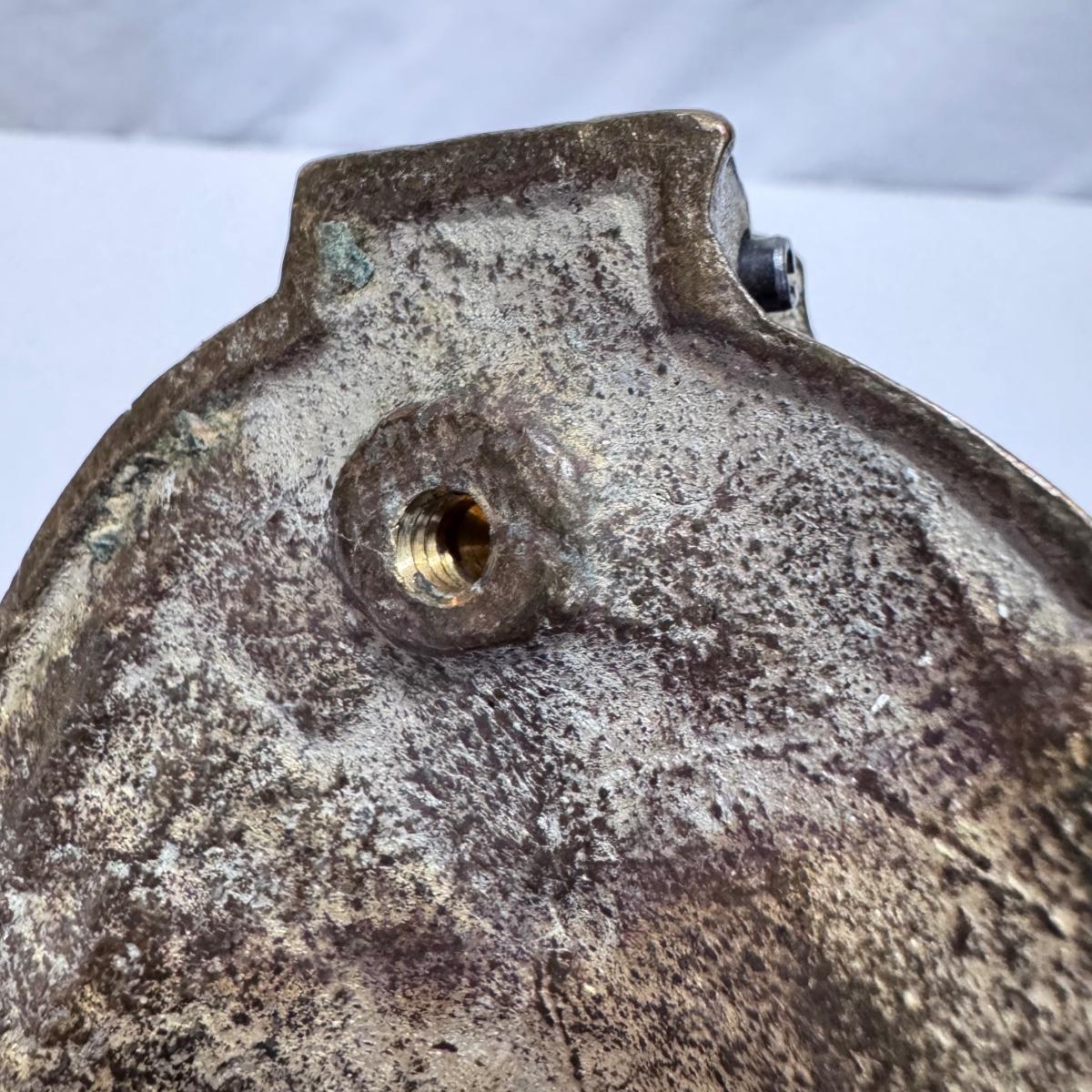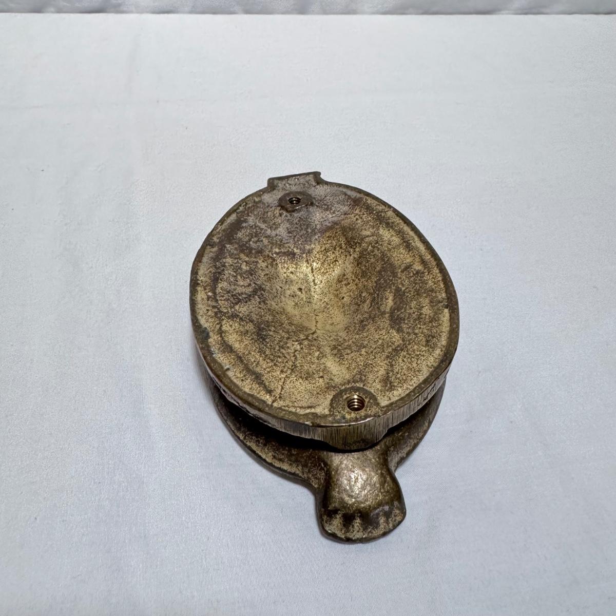This lot includes, what appears to be, one vintage brass lion head door knocker. There are two holes in the back for wall hanging purposes. The door knocker is on the larger size, measures 3.5” x 6” x 1”H. Shipping available.