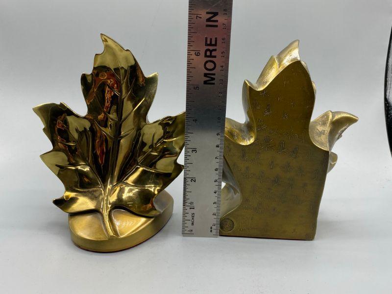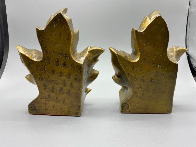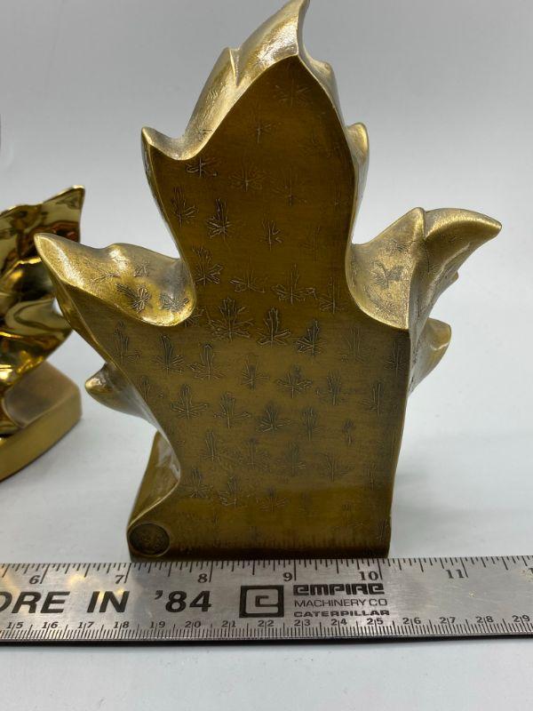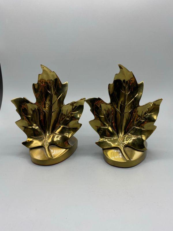 Vintage Brass Maple Leaf Bookends by Philadelphia Manufacturing Co YD#011-1120-00199