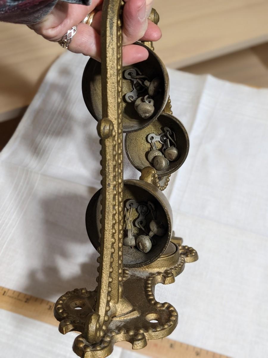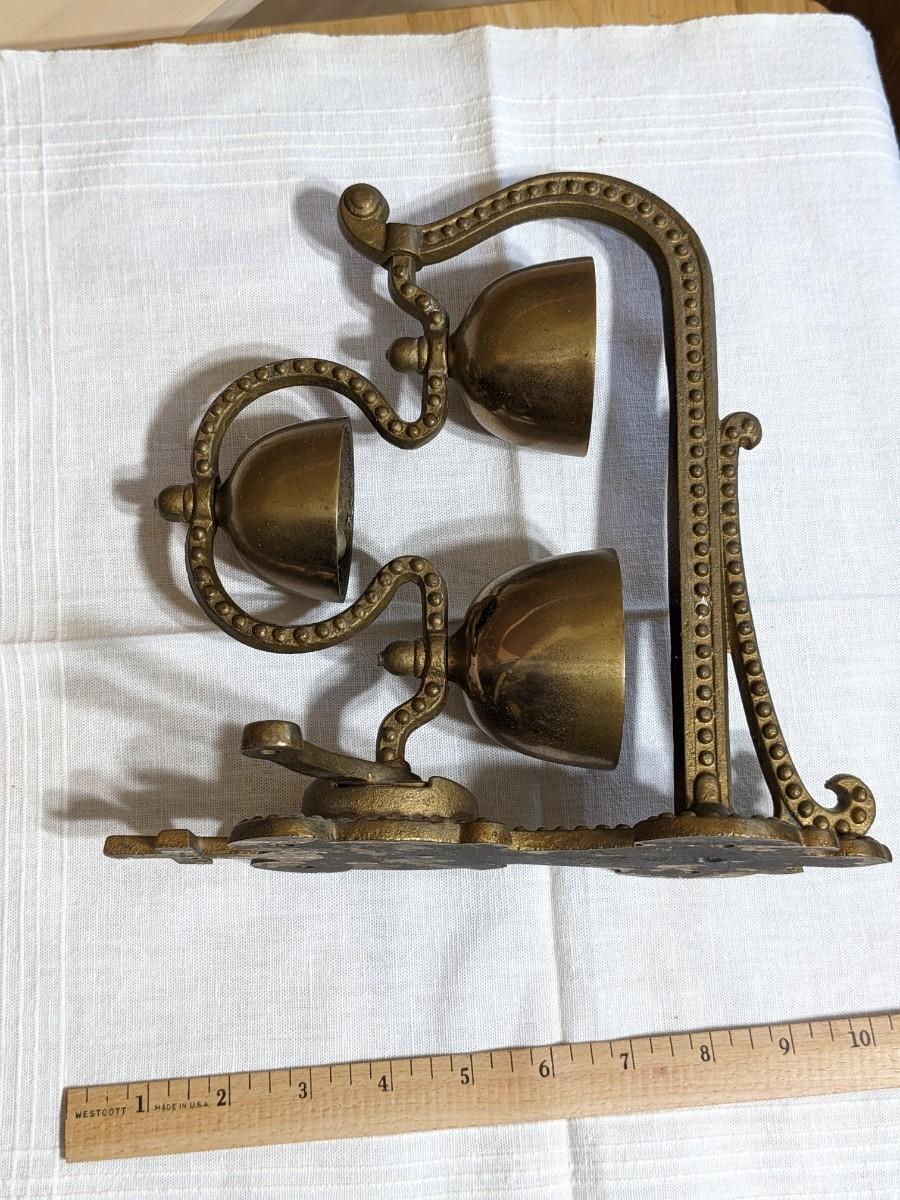 Three bells each with three clappers producing a loud and wonderful triple-tone sound.