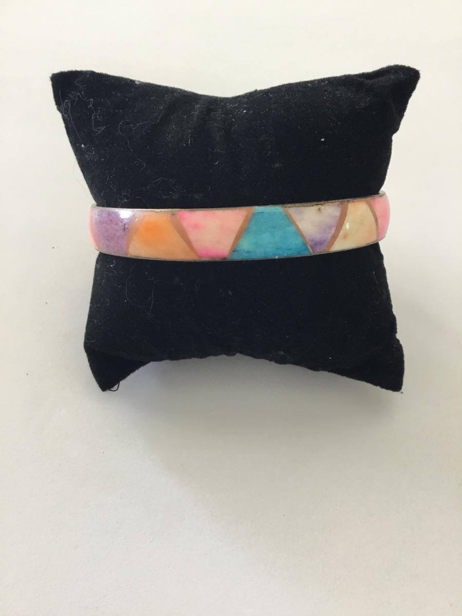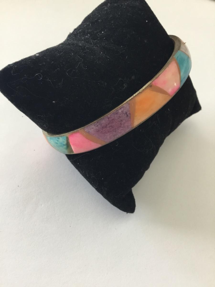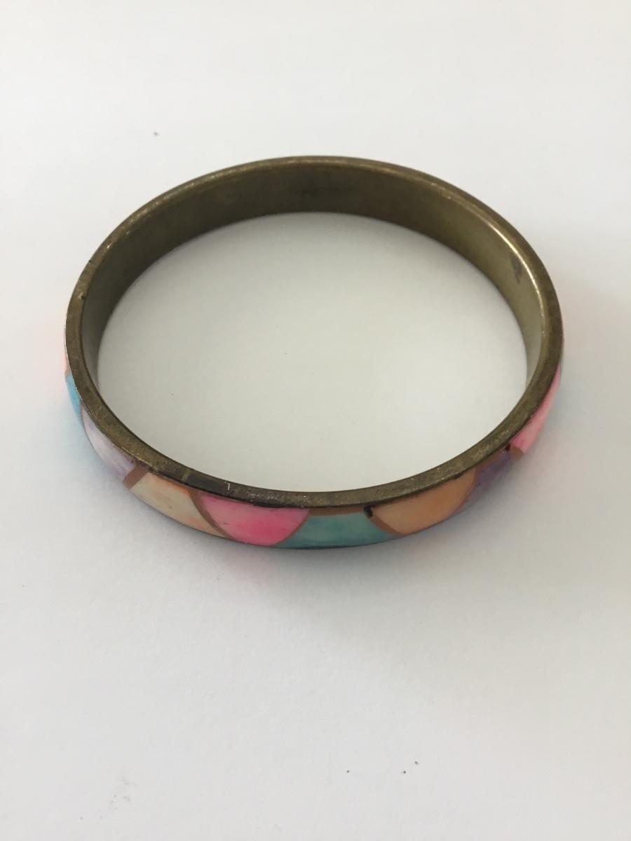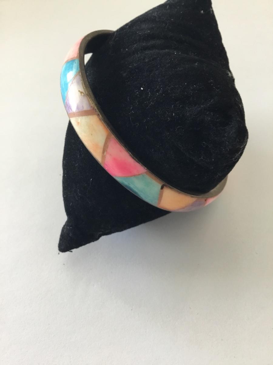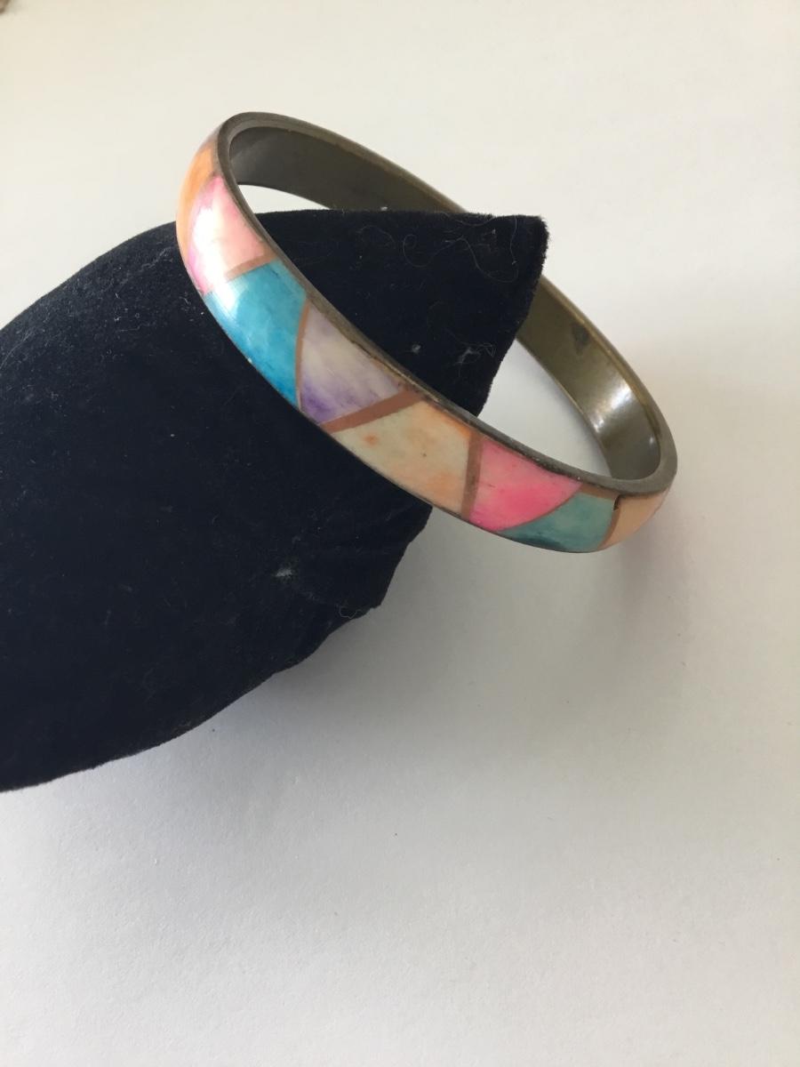 Vintage, brass multicolored Shell inlay bangle bracelet