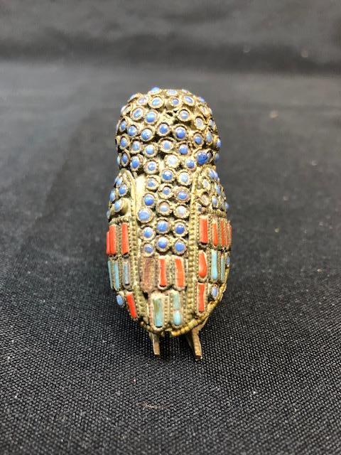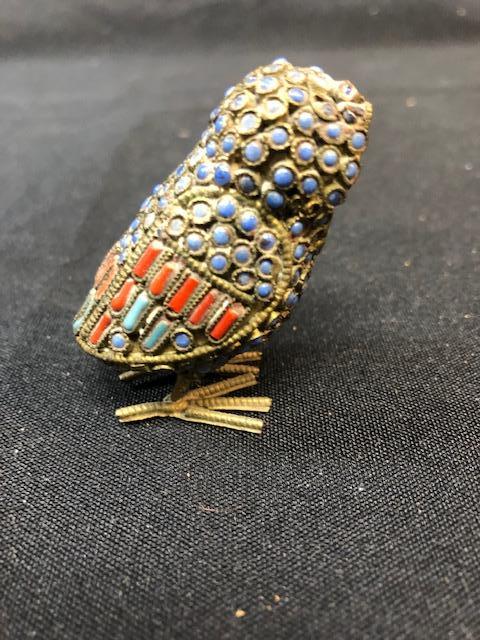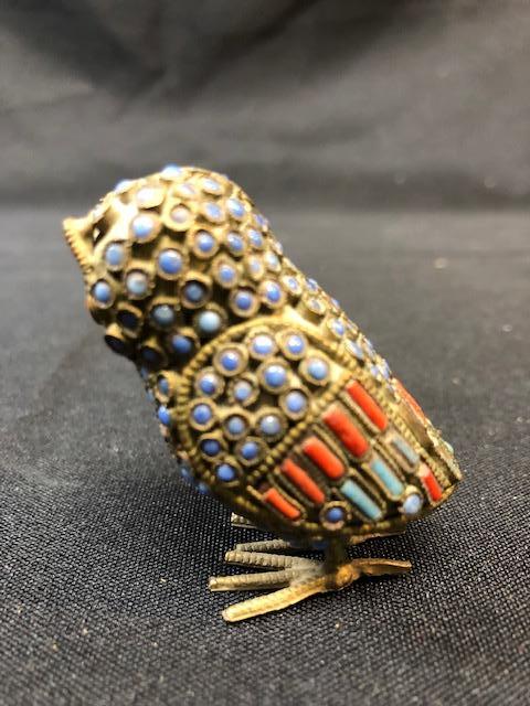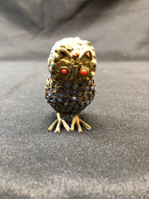 Vintage Brass Owl Figurine. Stone inlaid design. Some stones have fallen out or been damaged through the years.