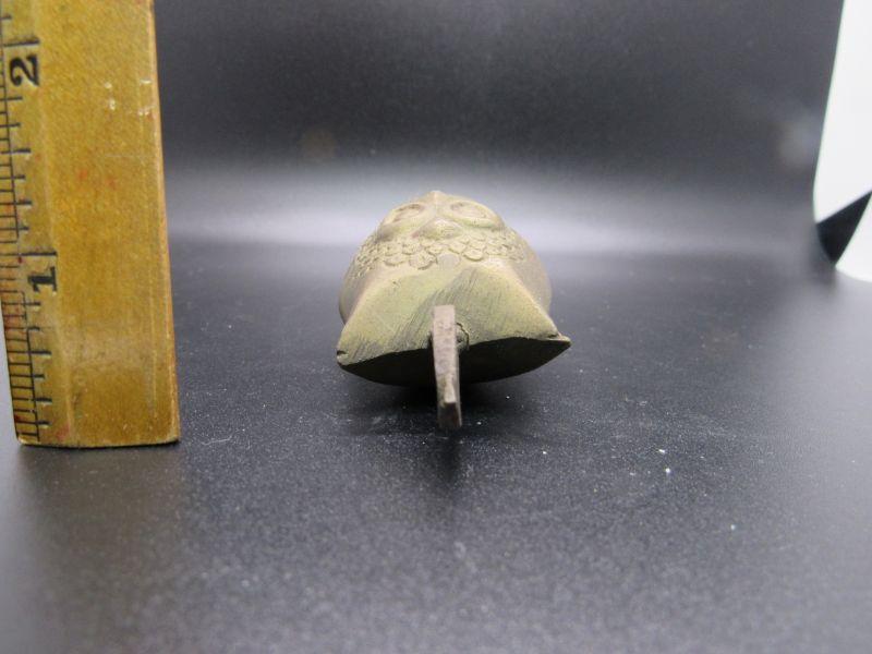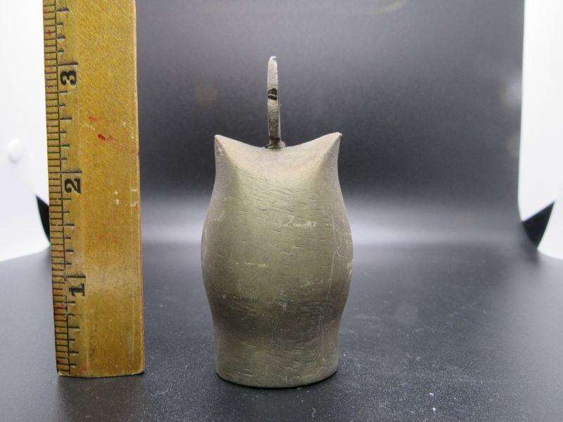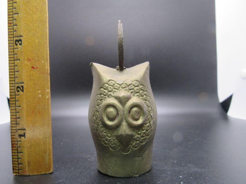 Vintage owl shaped brass bell. Stamped features and details. About 3" size. #001-0032