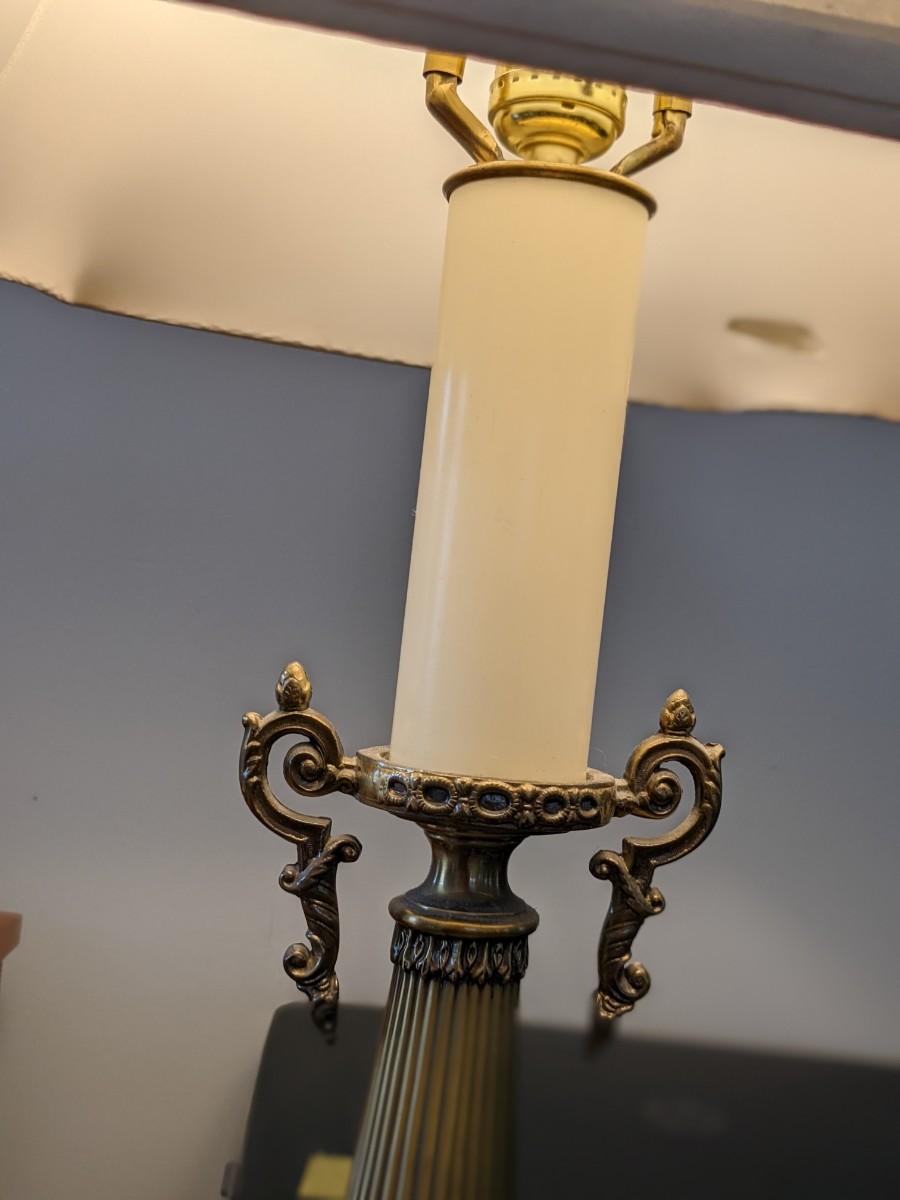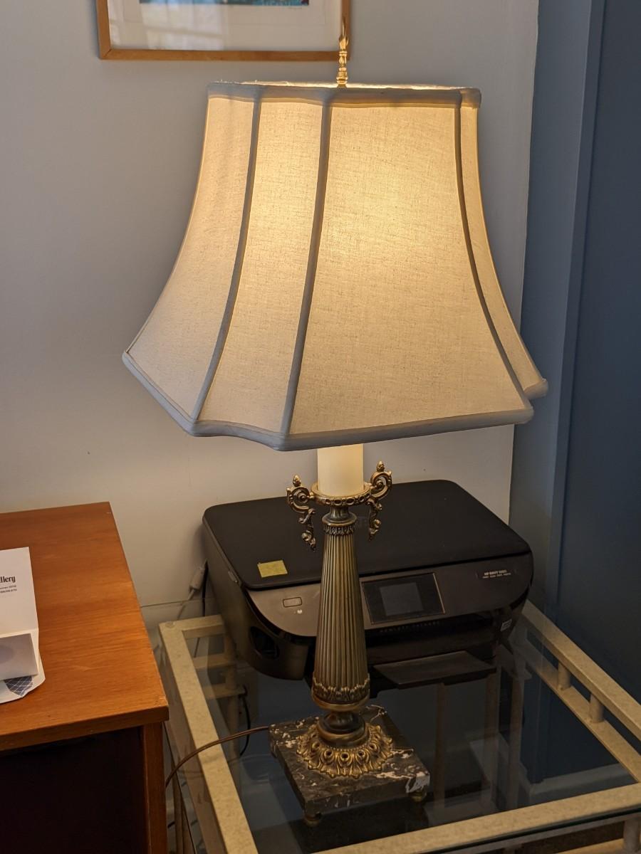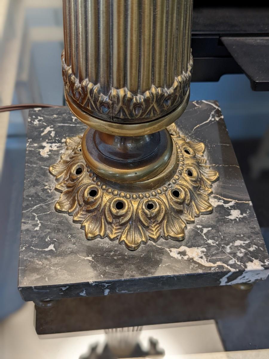 Vintage Brass Plated Cast Metal , Marble Base Table Lamp, c. 1950