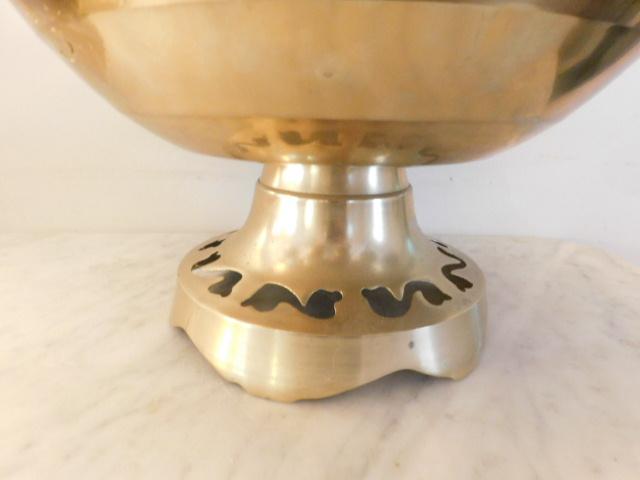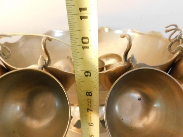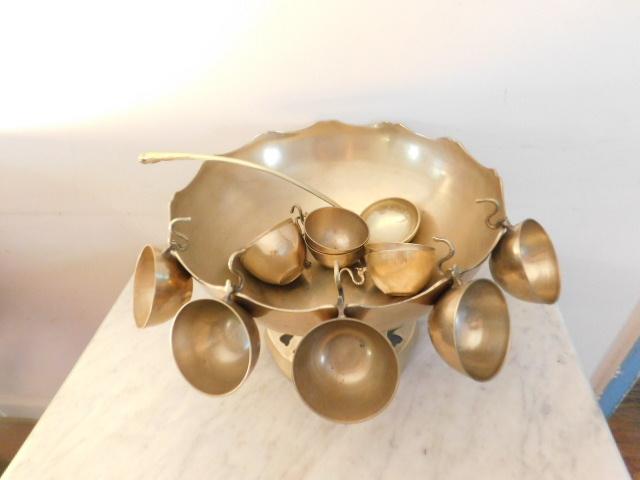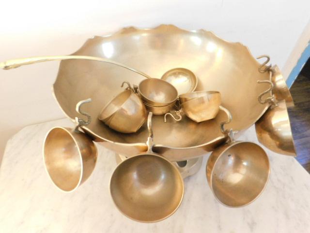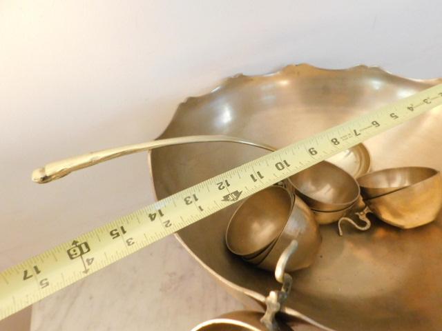 Vintage Brass Punch Bowl with 12 Matching Cups bowl has small puncture as shown