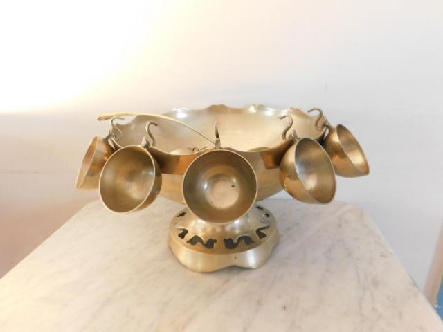 Vintage Brass Punch Bowl with 12 Matching Cups