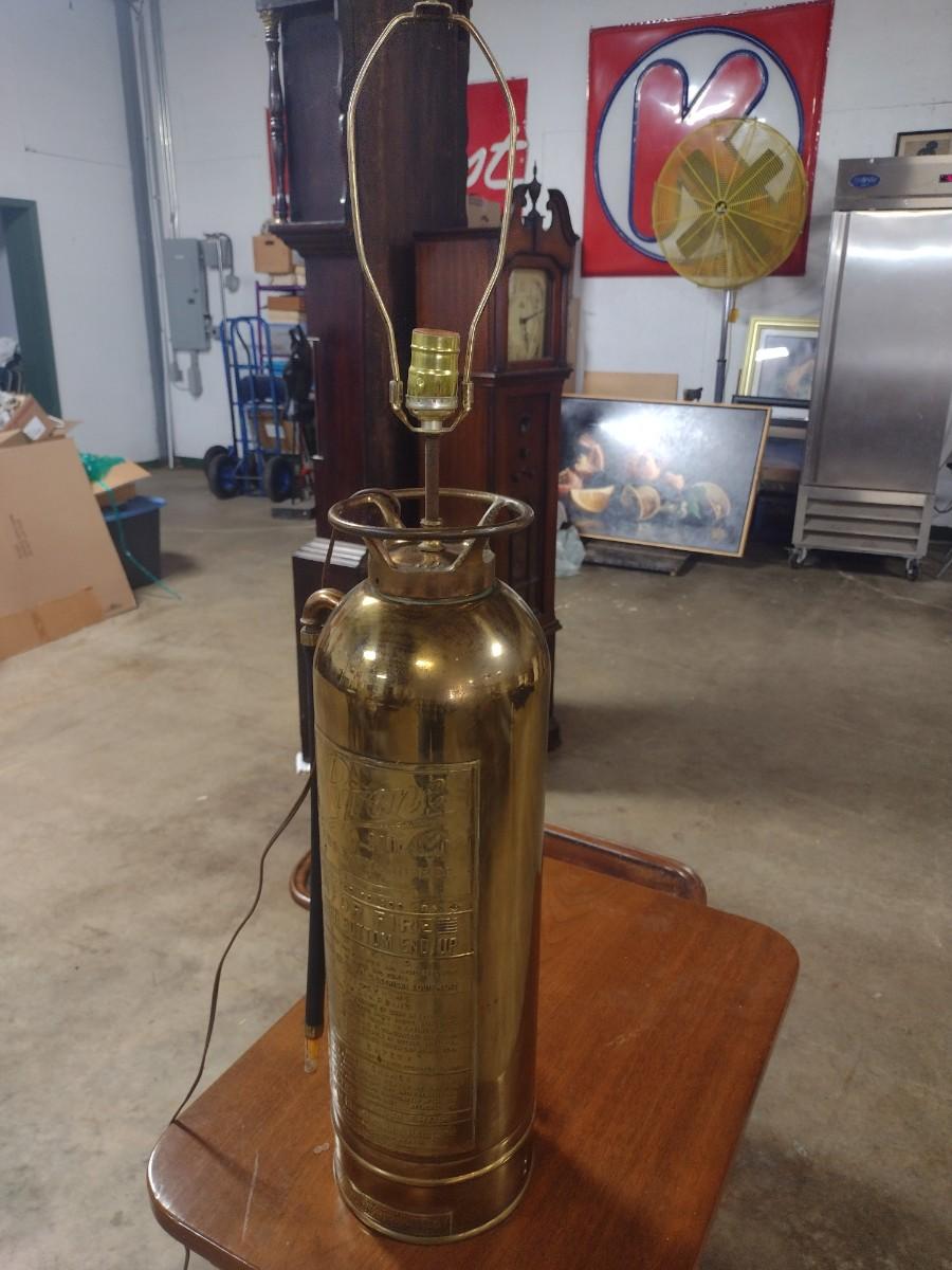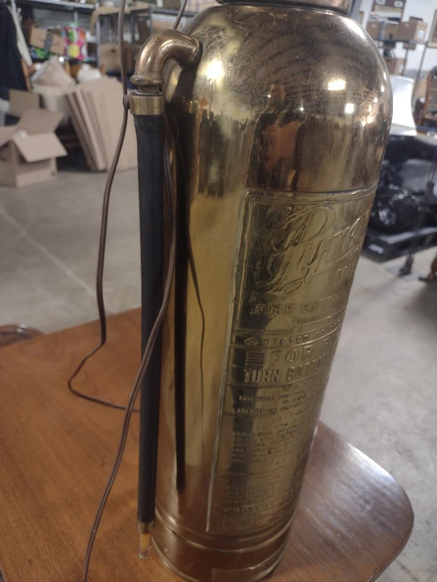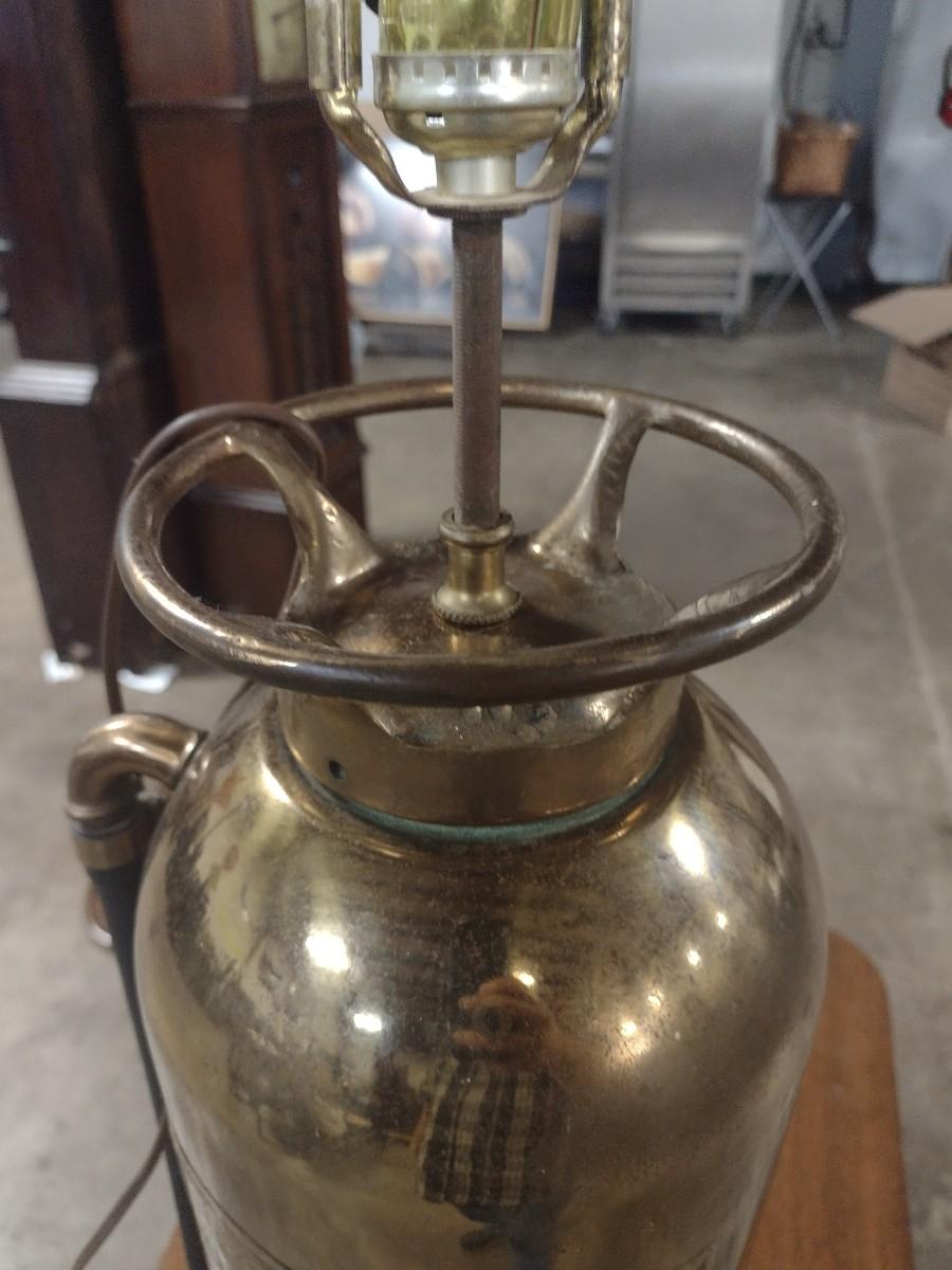 Vintage Brass Pyrene Fire Extinguisher Modified Table Lamp