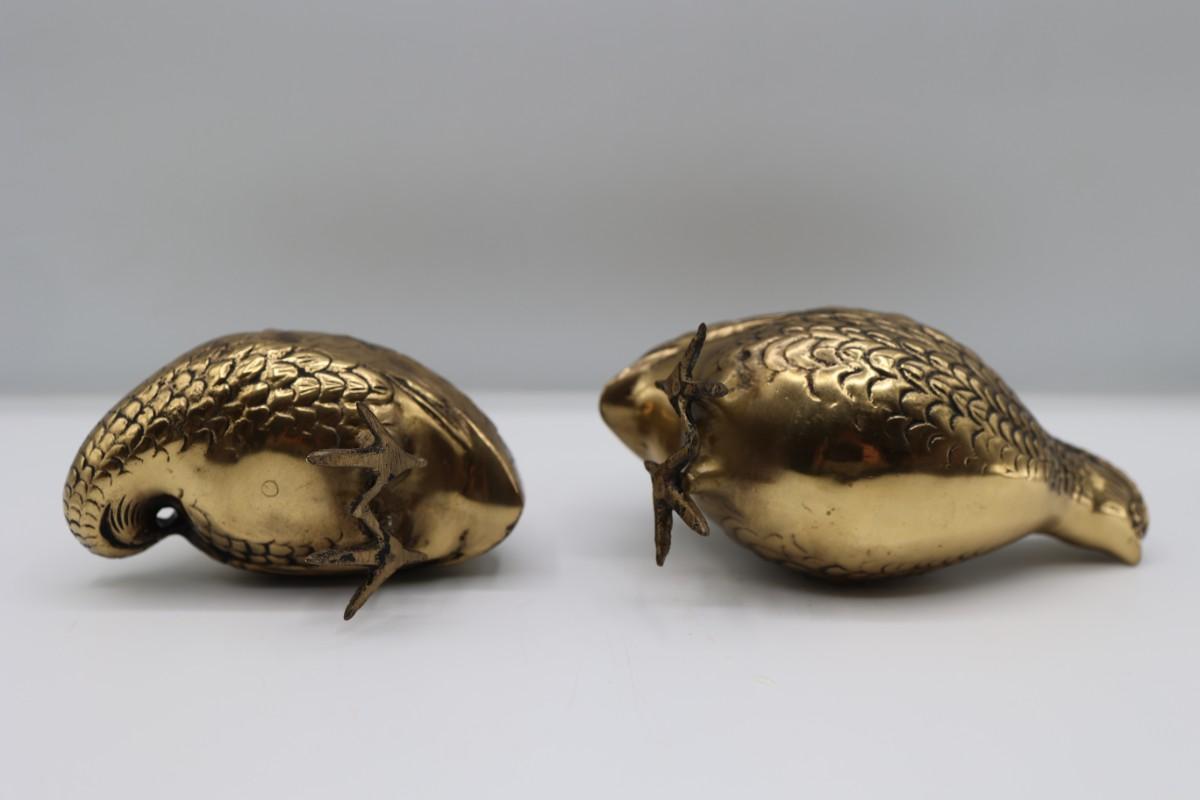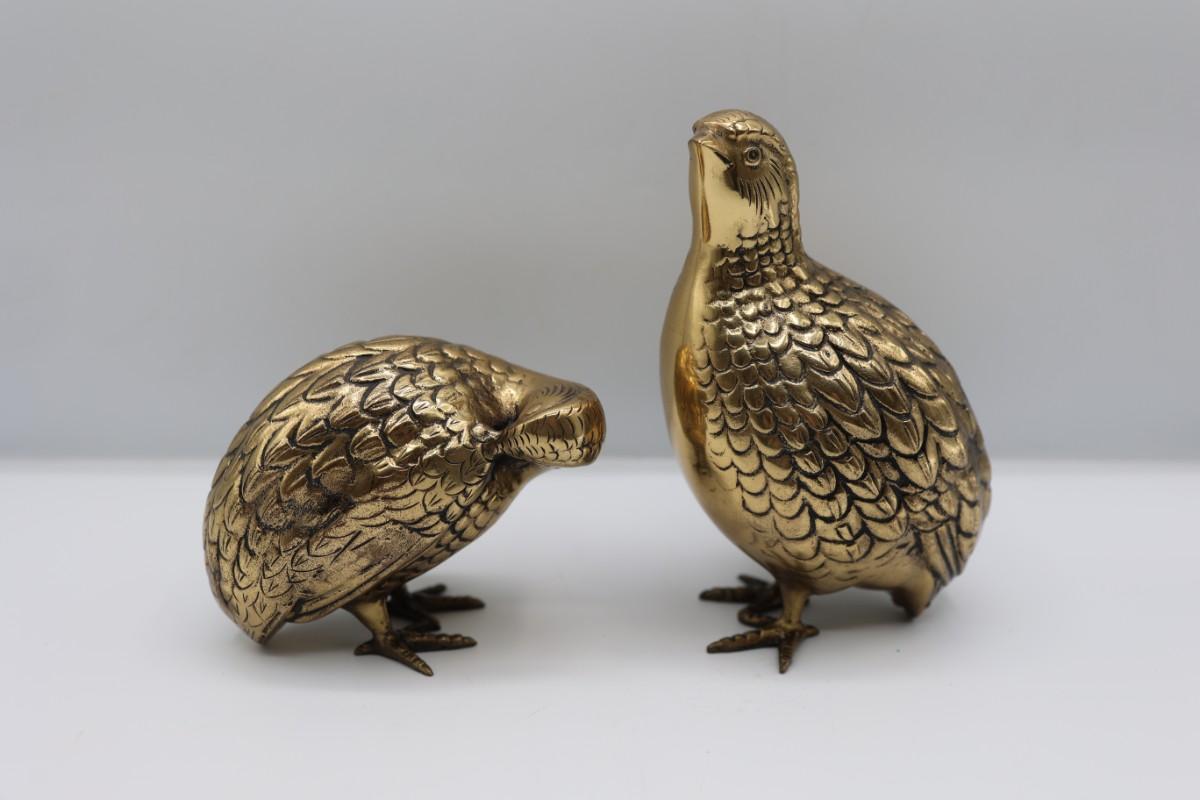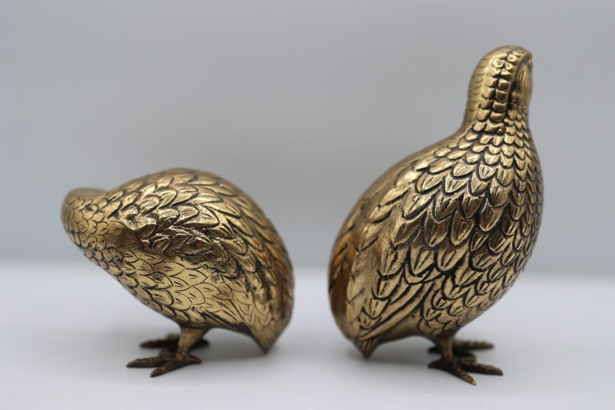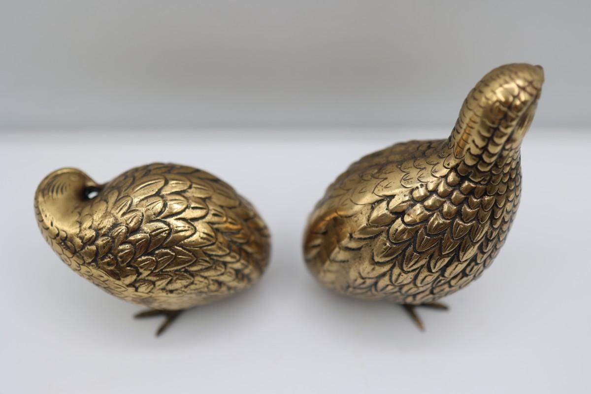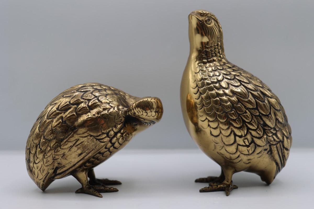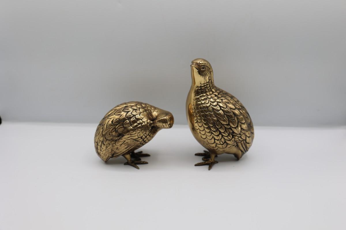 Vintage Brass Quail Statues