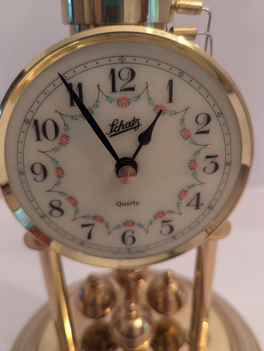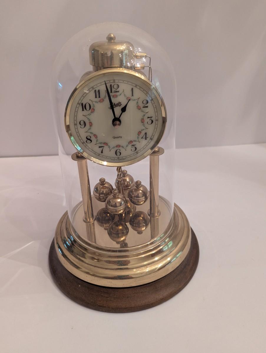 Vintage Brass Schatz Table Top Clock With Glass Dome