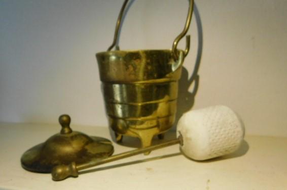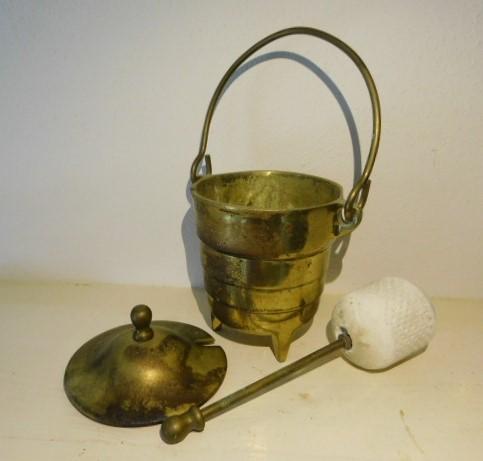 Vintage Brass Smudge Pot with Pumice Oil Wand