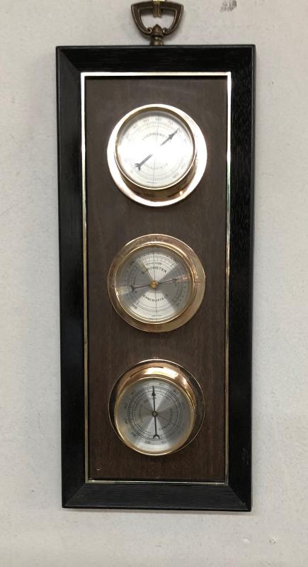 From the Mid Century here is a household weather center from Springfield Instruments...Good condition...Analog...Brass...