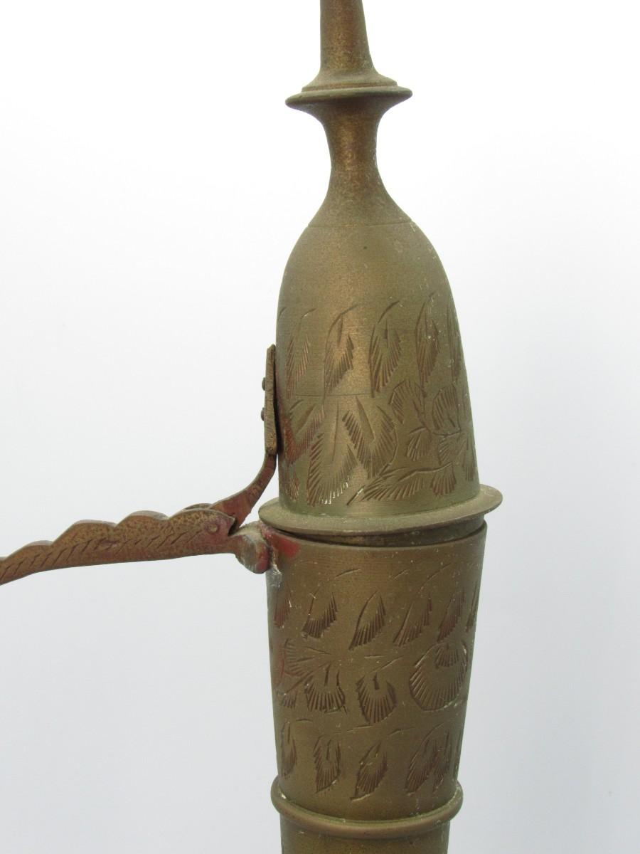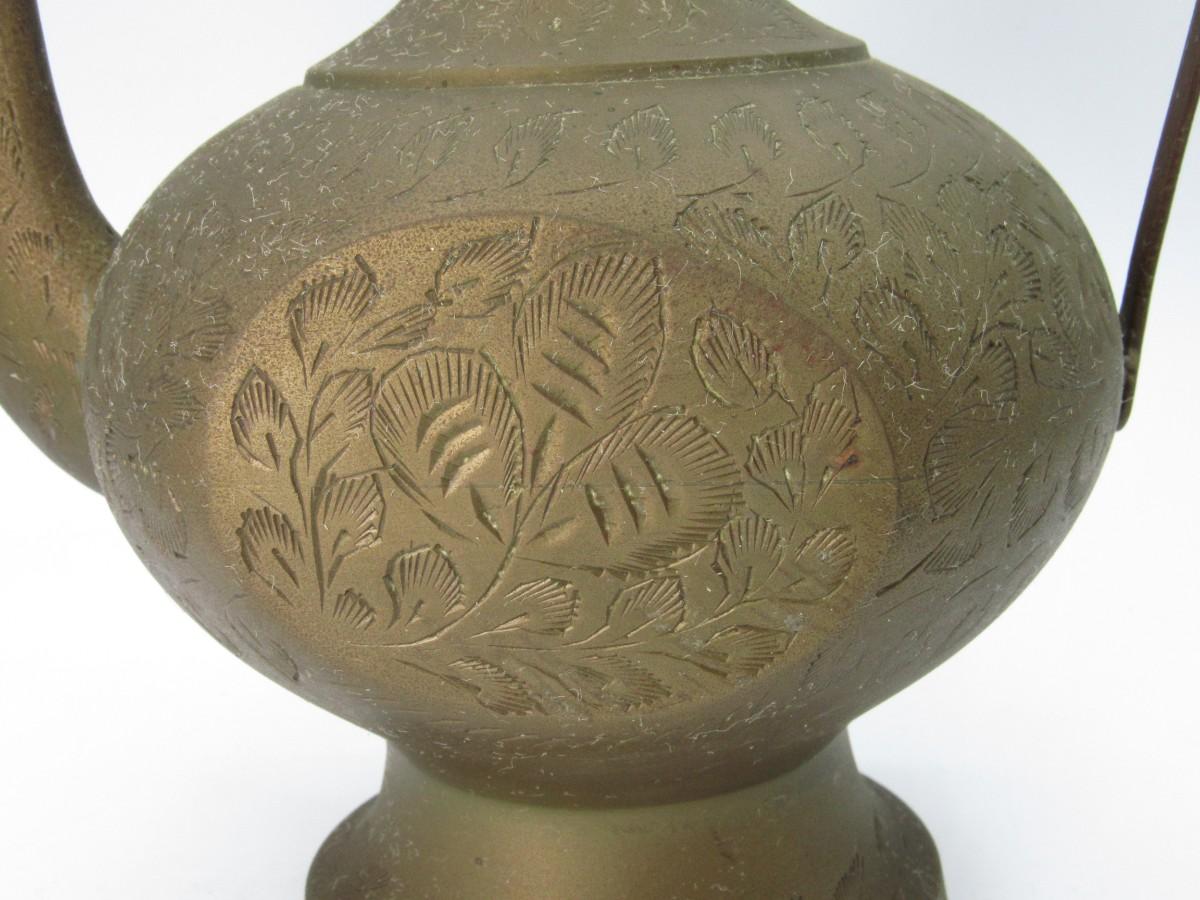Vintage Brass Surahi Aftaba Ewer Etched Floral Leaf Water Tea Coffee Pitcher Jug Made In India