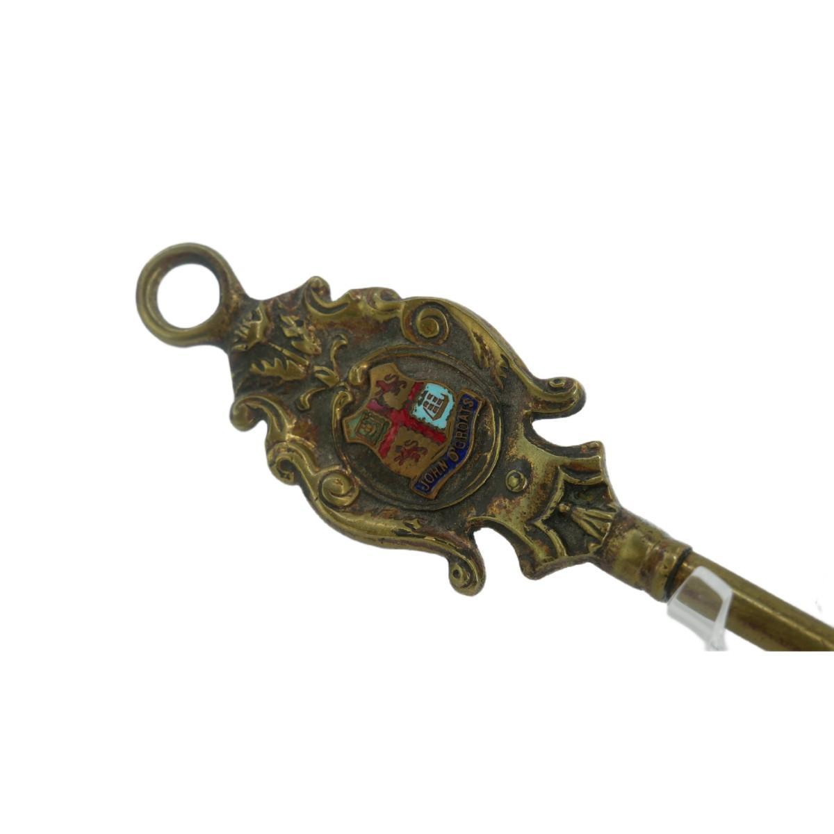Vintage (possibly antique) John O' Groats, Scotland shield of arms large brass toasting fork. Signed by artist "RD" on back. Excellent condition. Measures 19.5" across and fork is 2" wide. Weighs 5.4 oz. (C113)