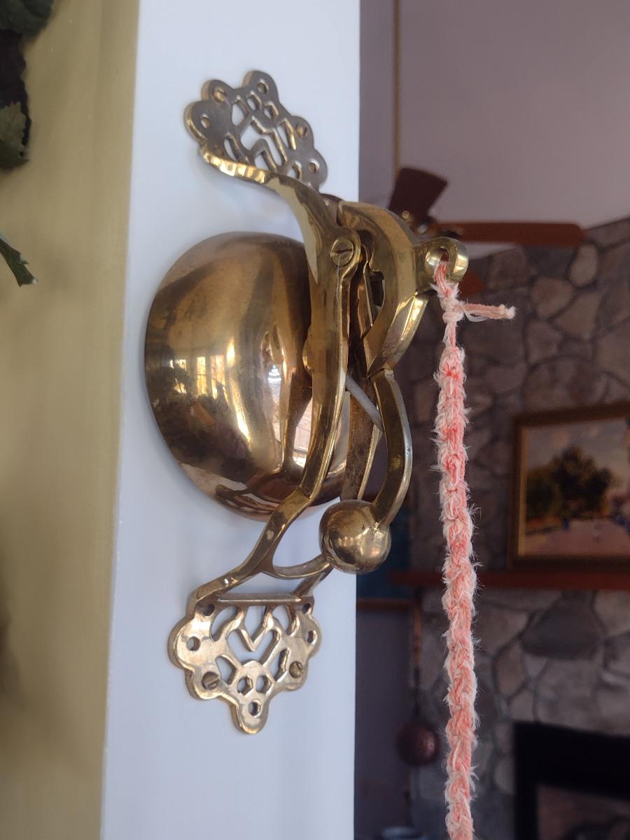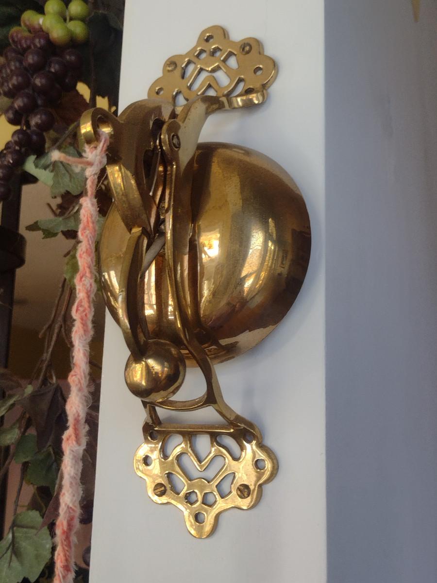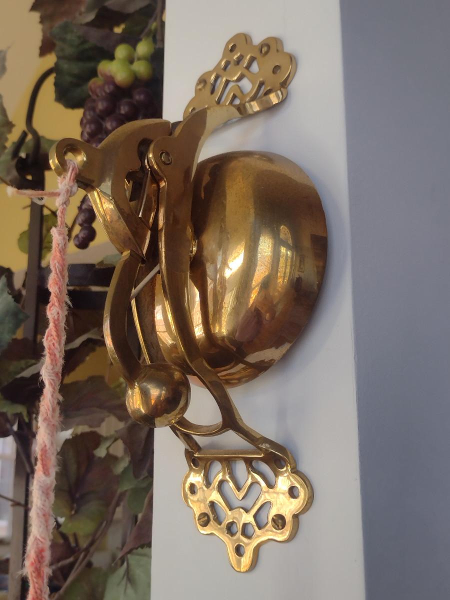 Vintage Brass Trolley Bell/Door Knocker. Item is attached to wall, please bring tools to remove.