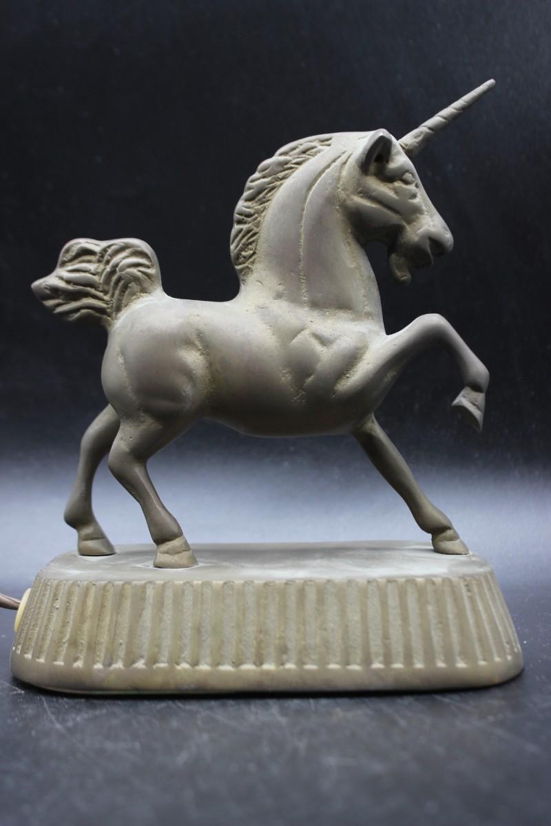 Vintage Brass Unicorn Statue Figurine Repurposed for Touch Control
