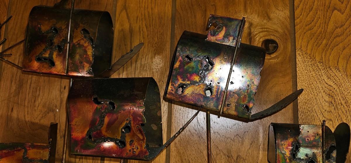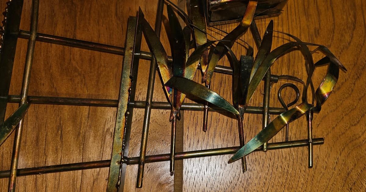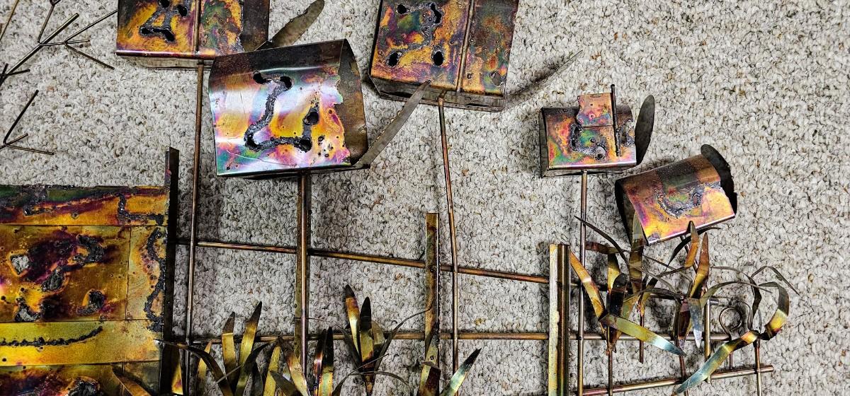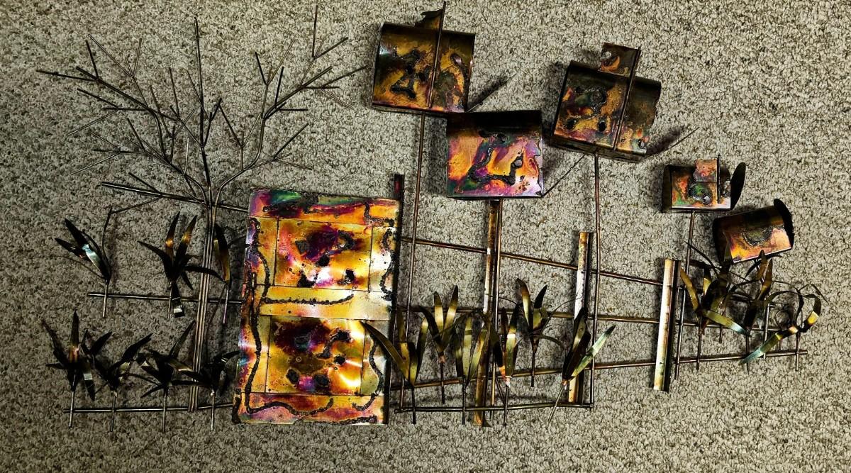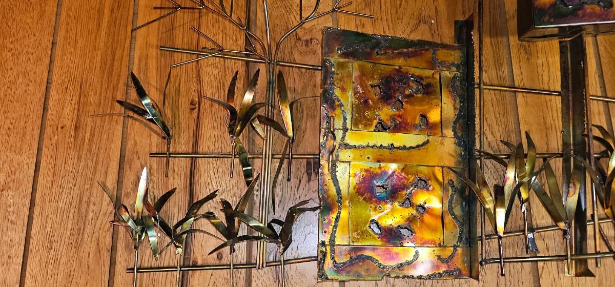 Vintage Brass wall hanging depicting a fence with mail boxes Brutalist Sculpture