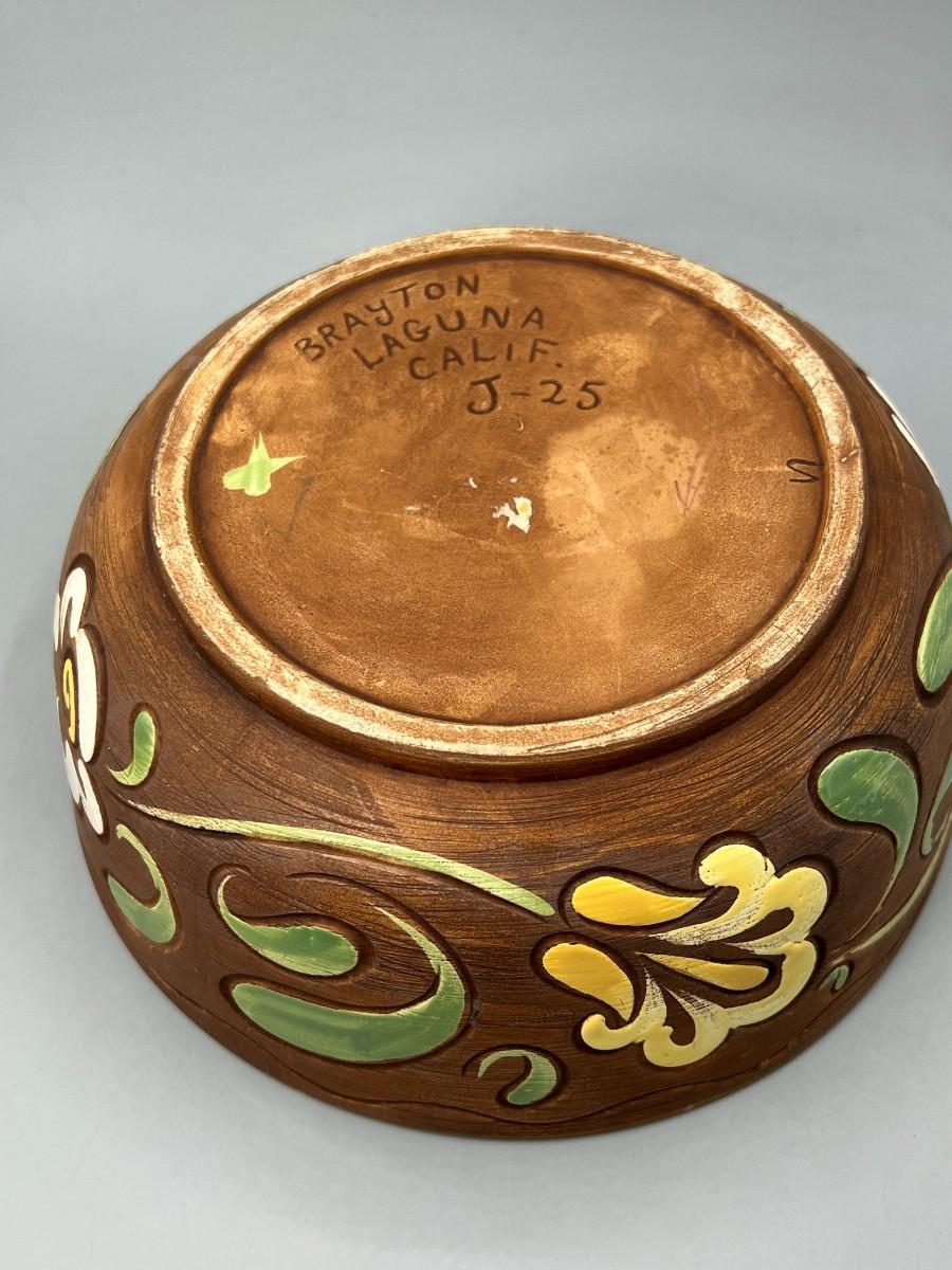 Vintage Brayton Laguna California Mid Century Handmade Pottery Art Flower Design Bowl